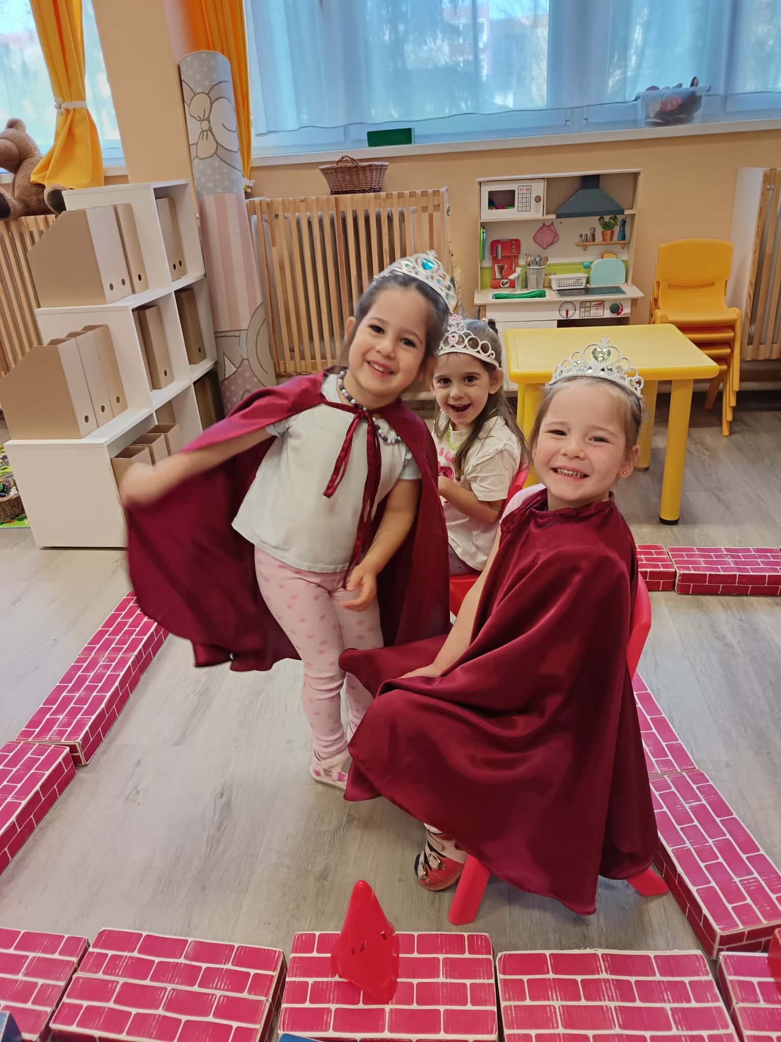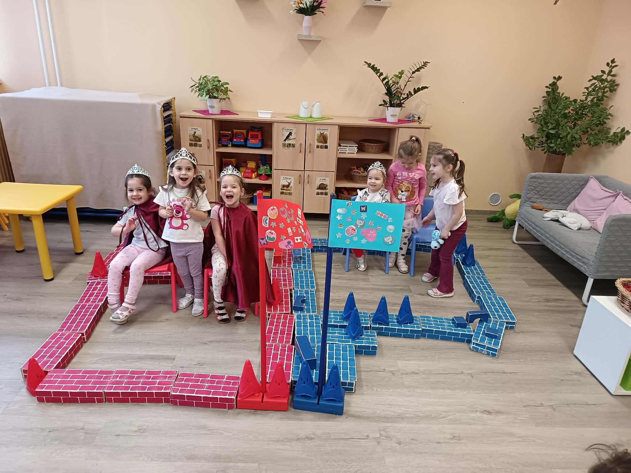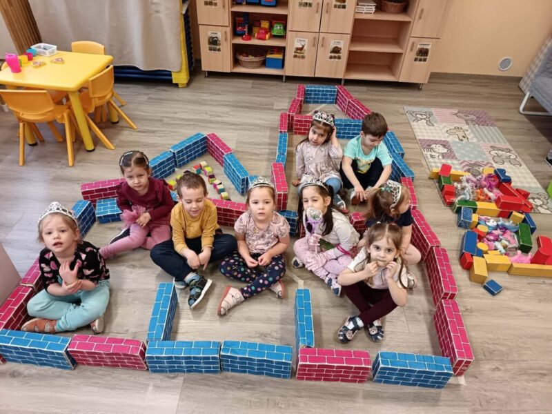 1. Mesebeli palota megépítése előre meghatározott minta alapján (matematikai tapasztalatszerzés-építések megadott minta szerint, geometriai formák gyakorlása, kisebb-nagyobb méretbeli összehasonlítások végzése)