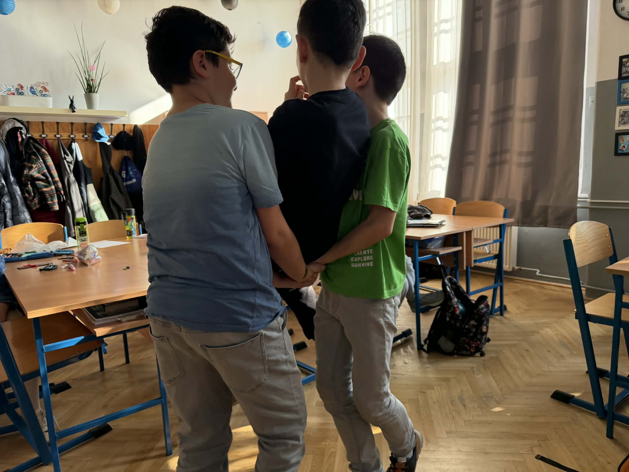 Az óra végén azt hangsúlyoztam, hogy a problémákat nem kell egyedül hordoznunk. Ha segítséget kérünk, sokkal könnyebb megbirkózni velük. Ezt egy játékos feladattal mutattuk be: egy gyermek egyedül nem tudta felemelni társát, de amikor ketten próbálták, már sikerült. Így a gyerekek megtapasztalhatták, hogy együtt könnyebb megküzdeni a nehézségekkel.