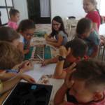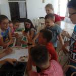 Az utolsó alkalommal szerettünk volna valami igazán gyerekeknek való témát találni, ahol minden gyereknek jut olyan feladat, amelyet szívesen végez, nem utasít el. Ezért az Activity társasjátékot vettük elő, melyben a gyerekek rajzolhattak, mutogathattak, illetve körülírhattak különféle dolgokat, fogalmakat, tárgyakat. Négy fős csoportokban alakultak meg a csapatok, így mindig volt gyerek aki 1-1 témában kipróbálhatta magát. A játék jól sikerült, sok nevetést hallhattunk, örömteli pillanatokat élhettünk át ezen alkalom során is. 🙂