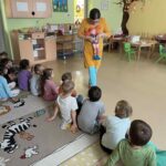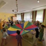 A mai alkalmon optimizmust igyekeztünk megtalálni magunkban. Szokásosan relaxációval kezdtünk, először csak zenével. Majd ezt követően mozgással kísértük, napimádással és a „Repül a madár…” gyakorlattal. Dóra, aki természetesen velem érkezett, elvarázsolta a gyerekeket igazi madarakká. Így együtt fel tudtunk szállni a léghajóra és repültünk optimista földre.