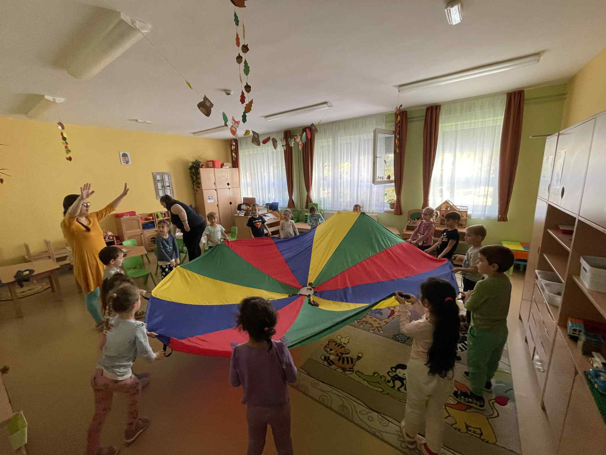 Ezt követően a léghajónkkal játszottunk, sok sok gesztenyét adott Dóra a játékhoz. Végül visszautaztunk a nagycsoportba.