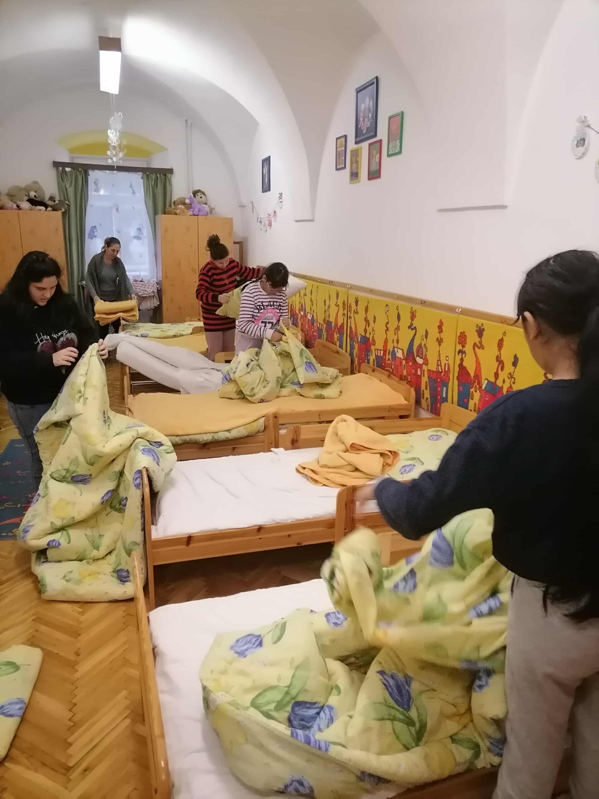 A jócselekedeteket nemcsak szavakkal, hanem tettekkel is gyakoroltuk: iskolánk kollégiumában segítettünk az óvodások ágyneműinek felhúzásában. A gyerekek örömmel és odafigyeléssel vettek részt ebben a közösségi szolgálatban, és később büszkén meséltek arról, milyen jó érzés volt segíteni a kisebbeknek.