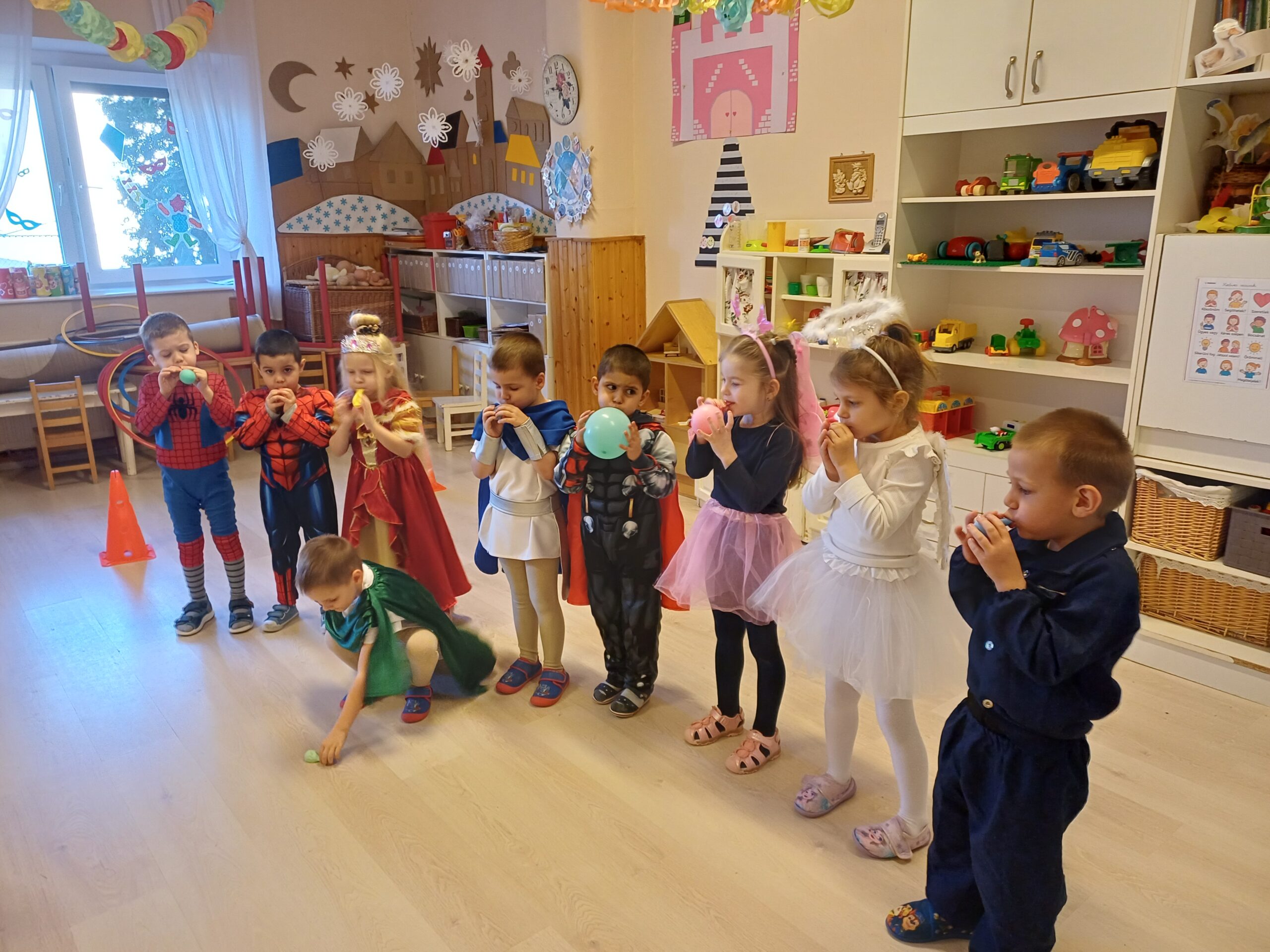 A farsangi mulatság különösen jól kapcsolódott a témához. Több gyermek is olyan hősnek öltözött, akik szorult helyzetekben is bátran helytállnak. A jelmezek mögött valódi belső erőt és önbizalmat is felfedezhettünk.