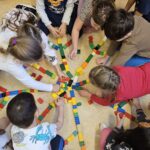 A kezdő relaxáció (Malomkörzés) után megbeszéltük a gyerekekkel, hogy kinek milyen céljai vannak, mit szeretne elérni ebben az évben? Mi a legnagyobb álmuk? Mit szeretnének megtanulni, kipróbálni? Hogy érzik magukat, amikor valami nem sikerül? Mit jelent: „Együtt minden könnyebb?” Ezt egy játék során ki is próbáltuk: a csoportszobában közösen raktunk ki egy hatalmas hópihét duplo legóból. Boldog Dóra ismét hozott nekünk egy mesét (Jónás Orsolya: Mese a hóemberről, aki barátokat keresett), majd meghallgattuk Bagdi Bella : Van nekem egy álmom dalát, lezárásként pedig kitartóan próbálták a gyerekek a papír hóember szájába belefújni a ping-pong labdát, illetve só-liszt gyurmából csodaszép hóembereket készítettek.