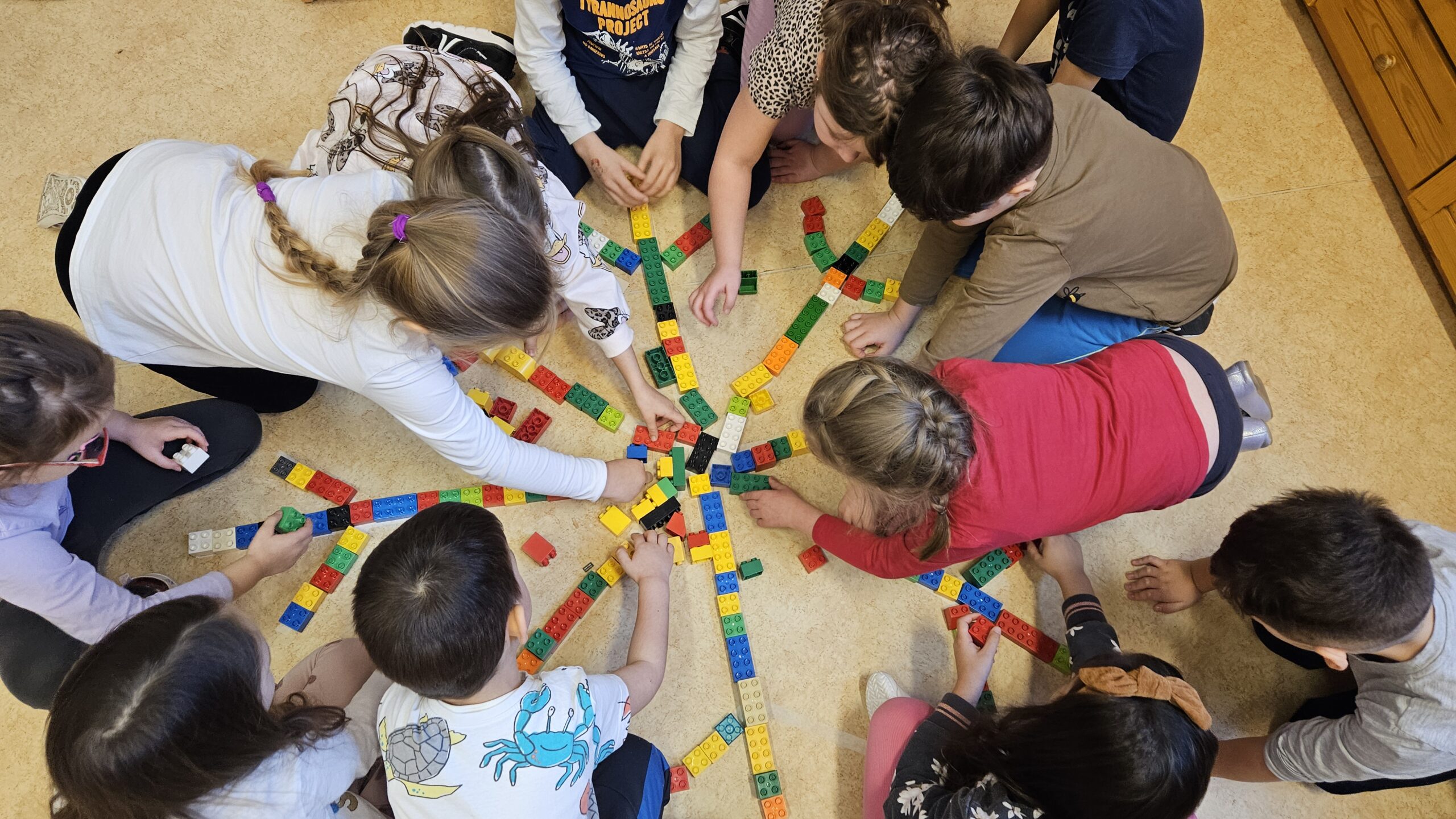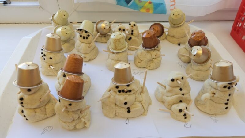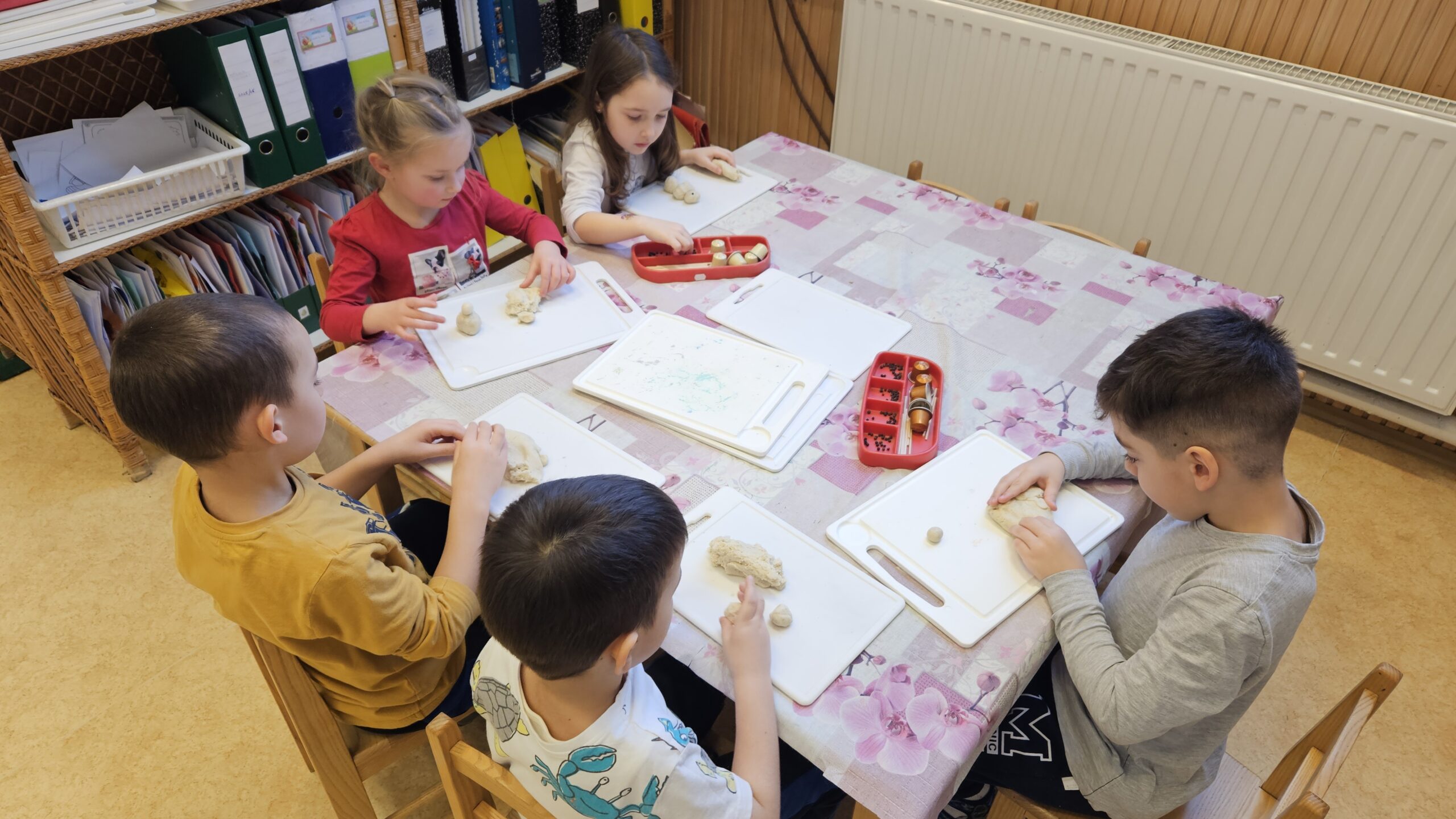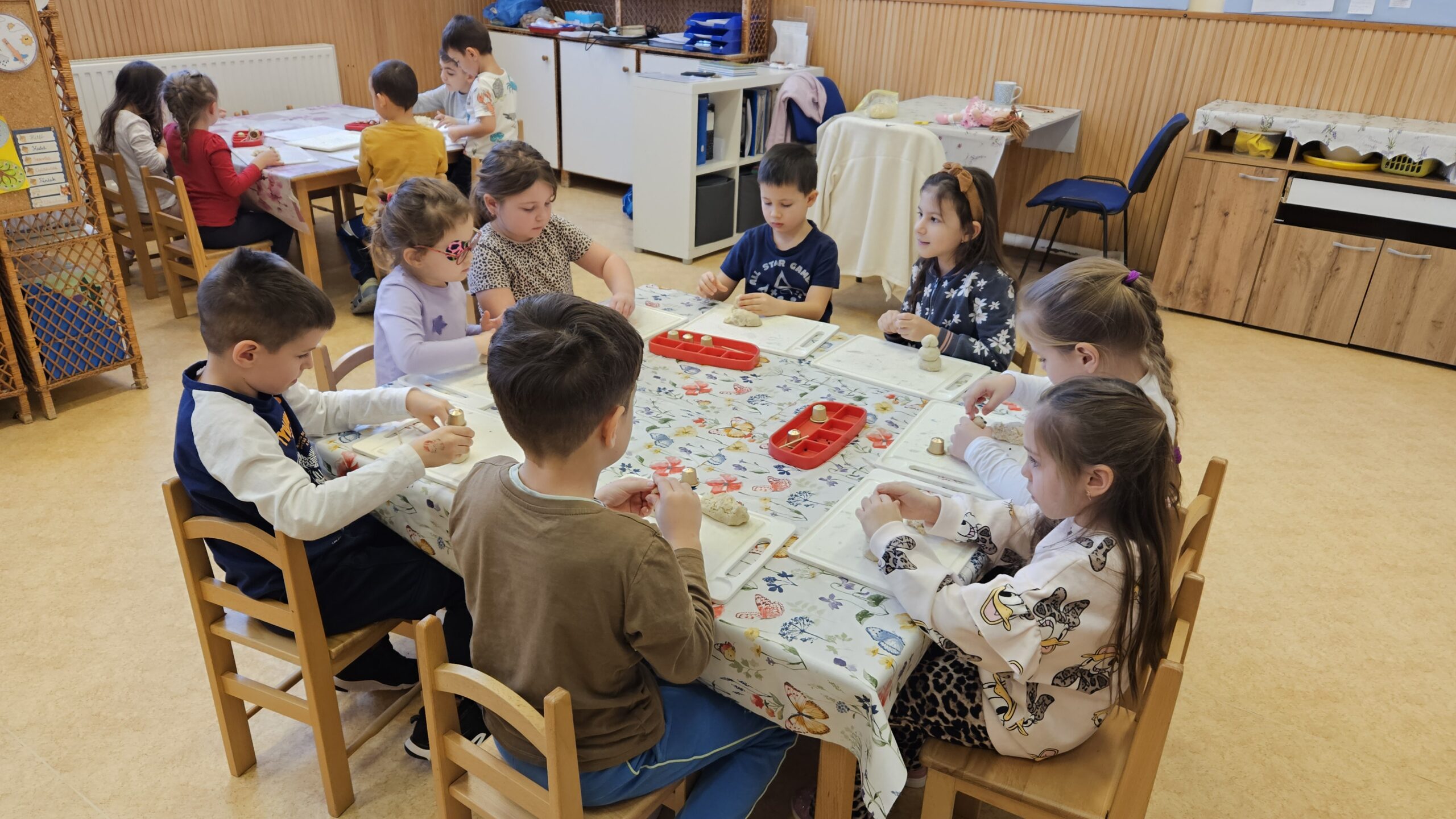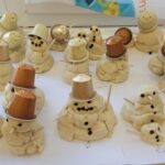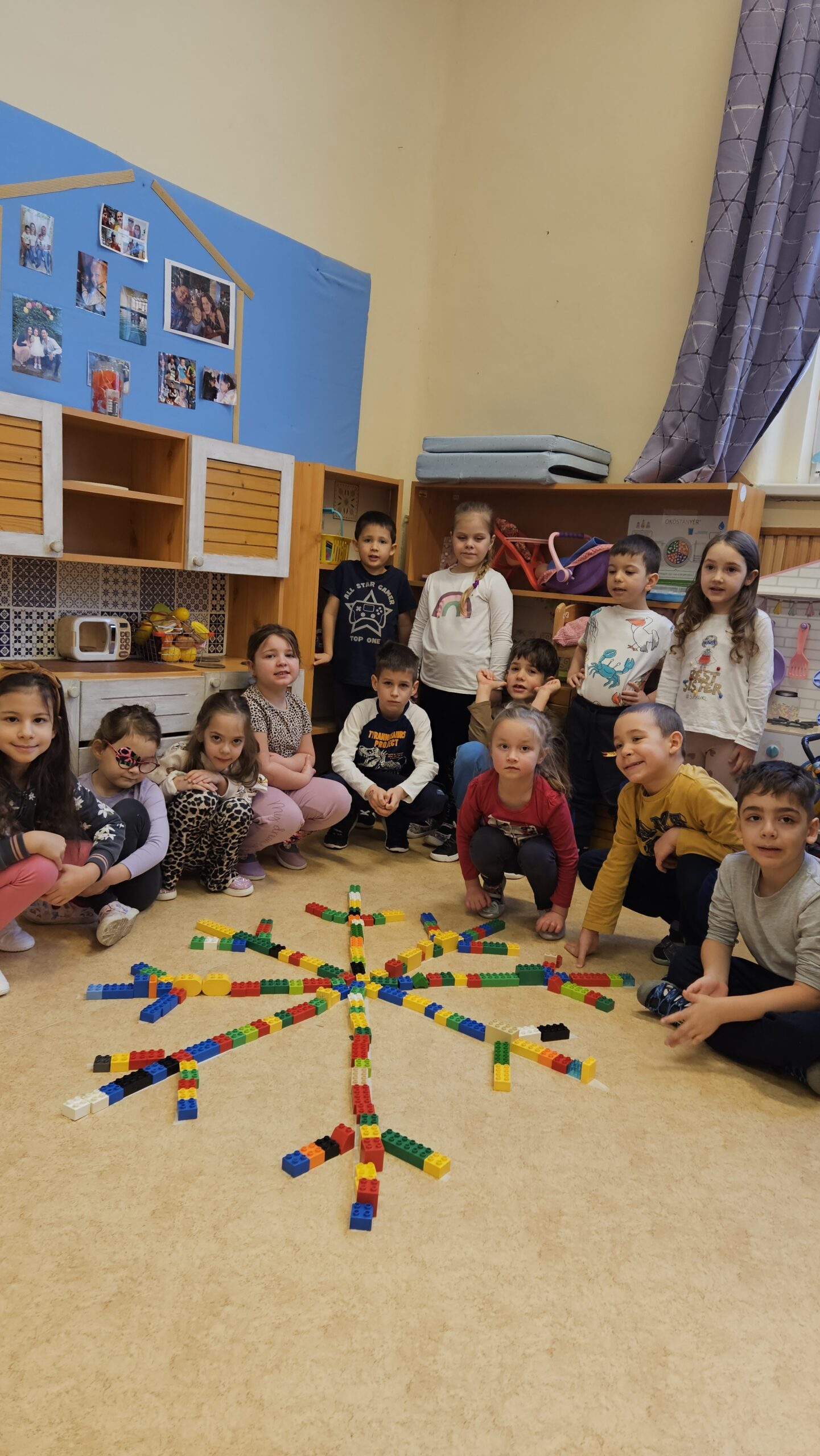 A kezdő relaxáció (Malomkörzés) után megbeszéltük a gyerekekkel, hogy kinek milyen céljai vannak, mit szeretne elérni ebben az évben? Mi a legnagyobb álmuk? Mit szeretnének megtanulni, kipróbálni? Hogy érzik magukat, amikor valami nem sikerül? Mit jelent: „Együtt minden könnyebb?” Ezt egy játék során ki is próbáltuk: a csoportszobában közösen raktunk ki egy hatalmas hópihét duplo legóból. Boldog Dóra ismét hozott nekünk egy mesét (Jónás Orsolya: Mese a hóemberről, aki barátokat keresett), majd meghallgattuk Bagdi Bella : Van nekem egy álmom dalát, lezárásként pedig kitartóan próbálták a gyerekek a papír hóember szájába belefújni a ping-pong labdát, illetve só-liszt gyurmából csodaszép hóembereket készítettek.