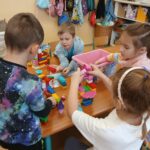 Végezetül időutazással elképzelték a gyerekek, hogyan élnek majd 20-30 év múlva, milyen lenne az ideális életük. Csoportmunkában, kockák/ legó felhasználásával, megtervezték leendő otthonukat.