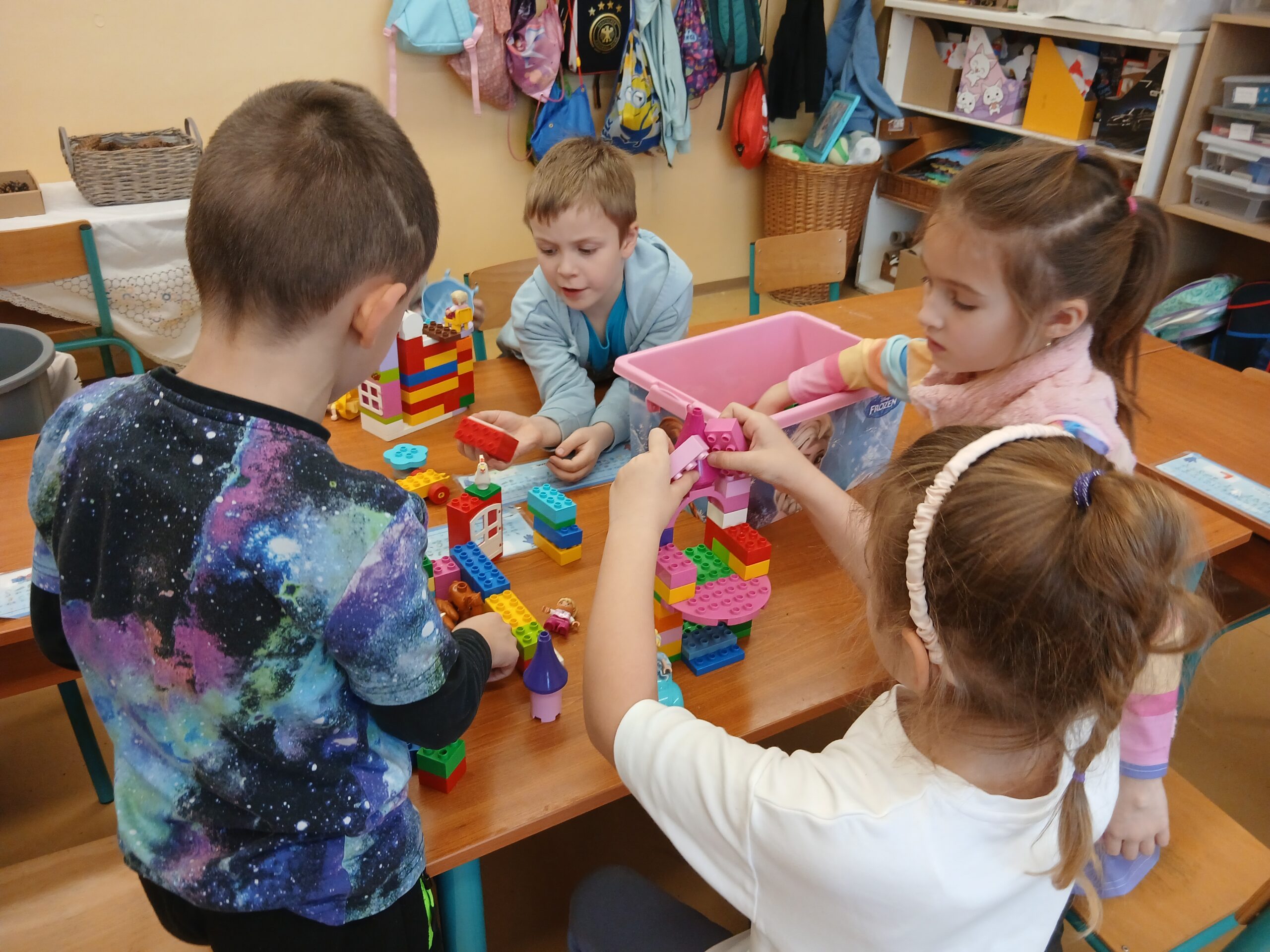 Végezetül időutazással elképzelték a gyerekek, hogyan élnek majd 20-30 év múlva, milyen lenne az ideális életük. Csoportmunkában, kockák/ legó felhasználásával, megtervezték leendő otthonukat.