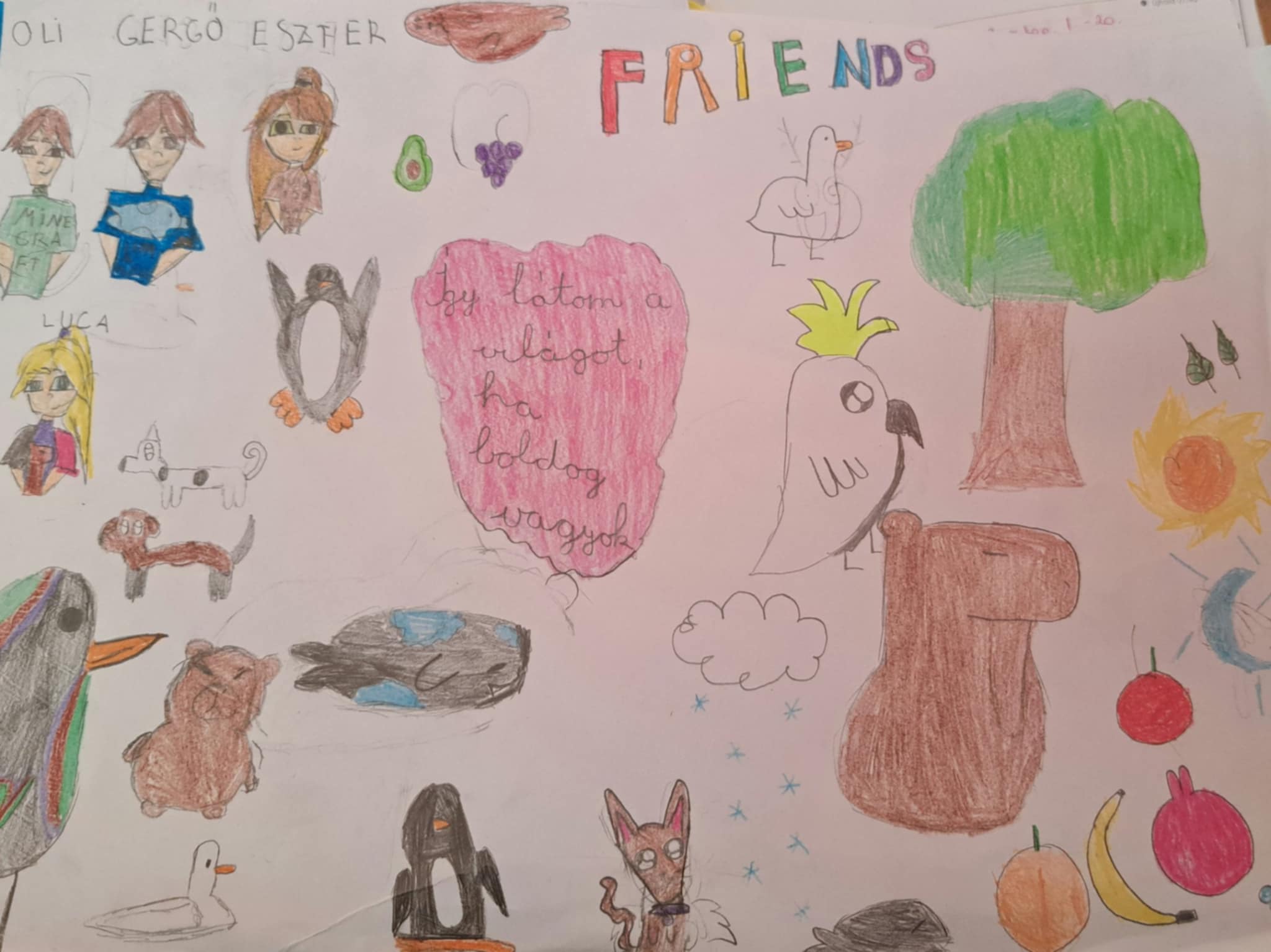 Csoportokban, a barátaikkal elkészíthettek egy rajzot, amiben feltüntették, hogy ők hogyan látják a világot, amikor boldogok, illetve mi teszi őket igazán boldoggá.