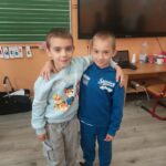 Az elsősökhöz a megszokott időpontban érkeztem, a szerdai napon. Marika néni a tanító néni kint volt a gyerekekkel az udvaron, mert nagyon jó volt az idő és szünetben egy kicsit mindig kimennek. A gyerekek vidámak voltak és önfeledten szaladgáltak, játszottak, fociztak, labdáztak, vagy éppen csak beszélgettek a barátok egymással. Kellett már ez a kis tavasz, hogy feltöltődjenek a gyerekek és a felnőttek is a sok tanulás, munka után. Nagy öröm volt számomra, hogy a negyedikesek is odajöttek hozzám és mindig megkérdezik, amikor találkozunk, hogy mikor jössz hozzánk is Boldogságórát tartani? A volt óvodásaim szeretettel ölelnek át és én is őket. Beszélgettünk a tavasz szépségeiről, a barátságról és mindenről, ami örömet okoz számunkra. Jó volt látni, hogy az udvar az a hely, ahol a barátok, a rokonok összetalálkozva egy kicsit beszédbe elegyednek, nevetgélnek, vagy összeölelkezve pózolnak nekem egy fotó erejéig és még engem is megnevettetnek. Ezek az apró kis örömök engem is feltöltenek a fárasztó mindennapokban. Nagyon szeretek ebbe az egyre bővülő és szépülő Zsadányi Református Általános Iskolába jönni, mert amennyi szeretetet adok, annak a sokszorosát kapom mindig vissza. A napfényes időt kihasználva magunkba szívtuk a napsugár erejét és feltöltődve mentünk vissza a terembe, ahol folytattuk a beszélgetést. A mesével és a zenével zártuk a Boldogságóránkat.