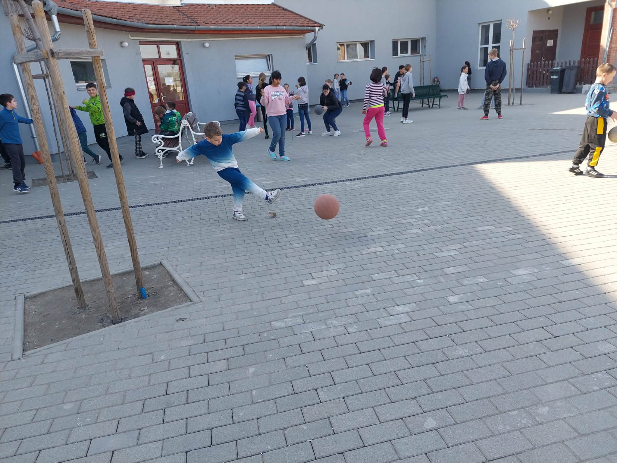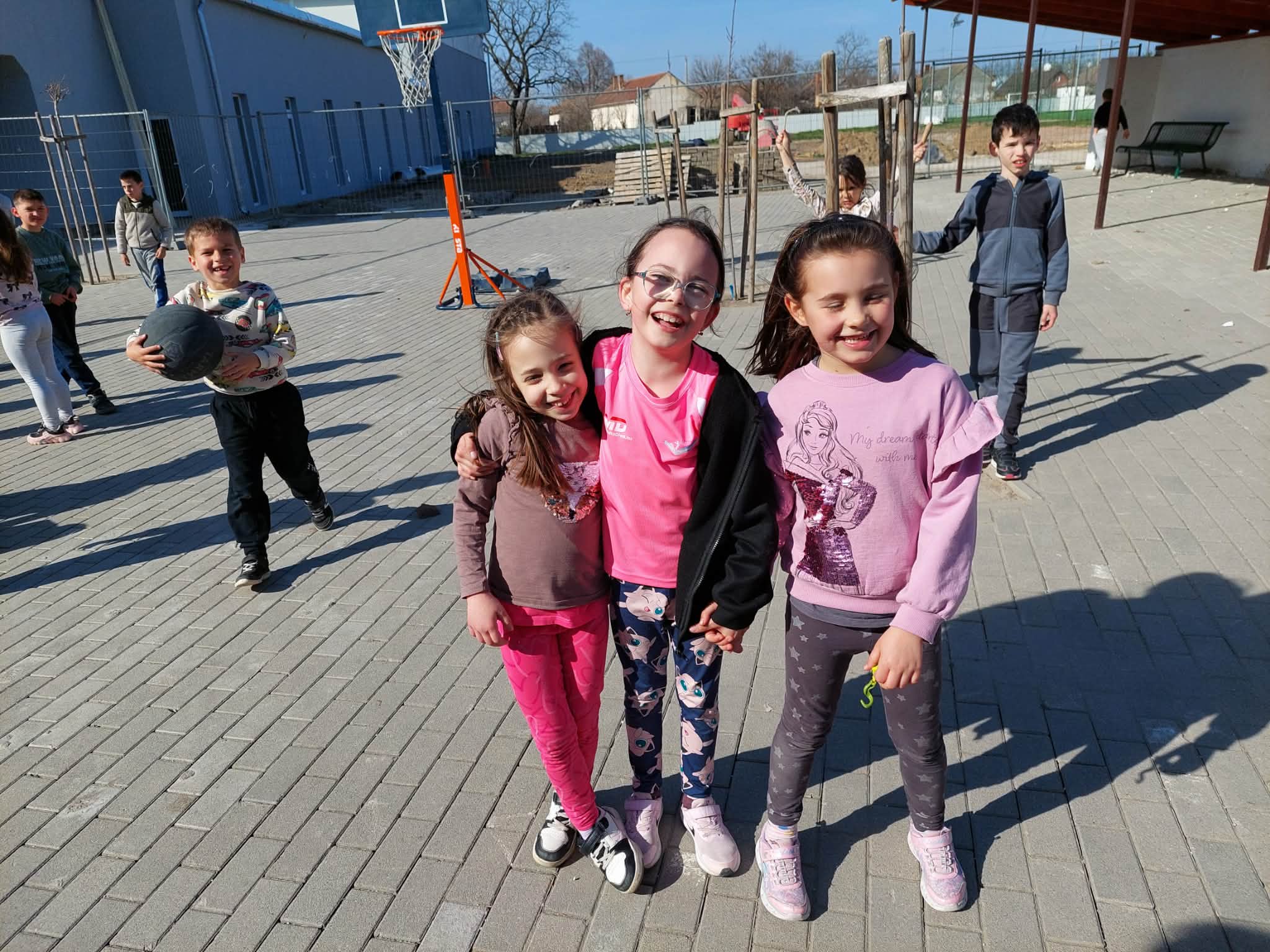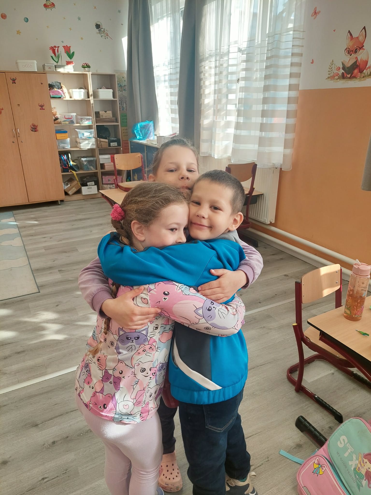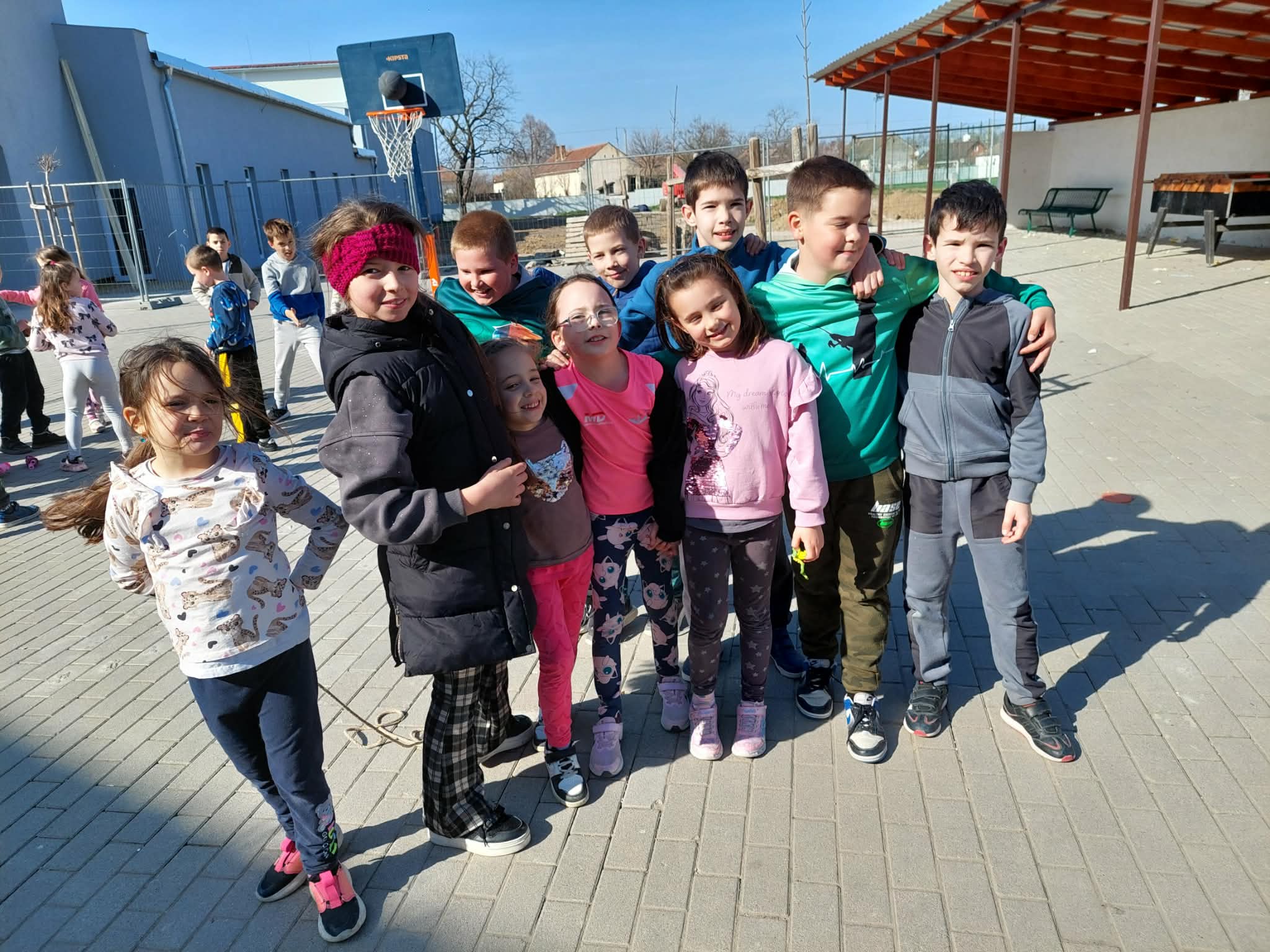 Az elsősökhöz a megszokott időpontban érkeztem, a szerdai napon. Marika néni a tanító néni kint volt a gyerekekkel az udvaron, mert nagyon jó volt az idő és szünetben egy kicsit mindig kimennek. A gyerekek vidámak voltak és önfeledten szaladgáltak, játszottak, fociztak, labdáztak, vagy éppen csak beszélgettek a barátok egymással. Kellett már ez a kis tavasz, hogy feltöltődjenek a gyerekek és a felnőttek is a sok tanulás, munka után. Nagy öröm volt számomra, hogy a negyedikesek is odajöttek hozzám és mindig megkérdezik, amikor találkozunk, hogy mikor jössz hozzánk is Boldogságórát tartani? A volt óvodásaim szeretettel ölelnek át és én is őket. Beszélgettünk a tavasz szépségeiről, a barátságról és mindenről, ami örömet okoz számunkra. Jó volt látni, hogy az udvar az a hely, ahol a barátok, a rokonok összetalálkozva egy kicsit beszédbe elegyednek, nevetgélnek, vagy összeölelkezve pózolnak nekem egy fotó erejéig és még engem is megnevettetnek. Ezek az apró kis örömök engem is feltöltenek a fárasztó mindennapokban. Nagyon szeretek ebbe az egyre bővülő és szépülő Zsadányi Református Általános Iskolába jönni, mert amennyi szeretetet adok, annak a sokszorosát kapom mindig vissza. A napfényes időt kihasználva magunkba szívtuk a napsugár erejét és feltöltődve mentünk vissza a terembe, ahol folytattuk a beszélgetést. A mesével és a zenével zártuk a Boldogságóránkat.