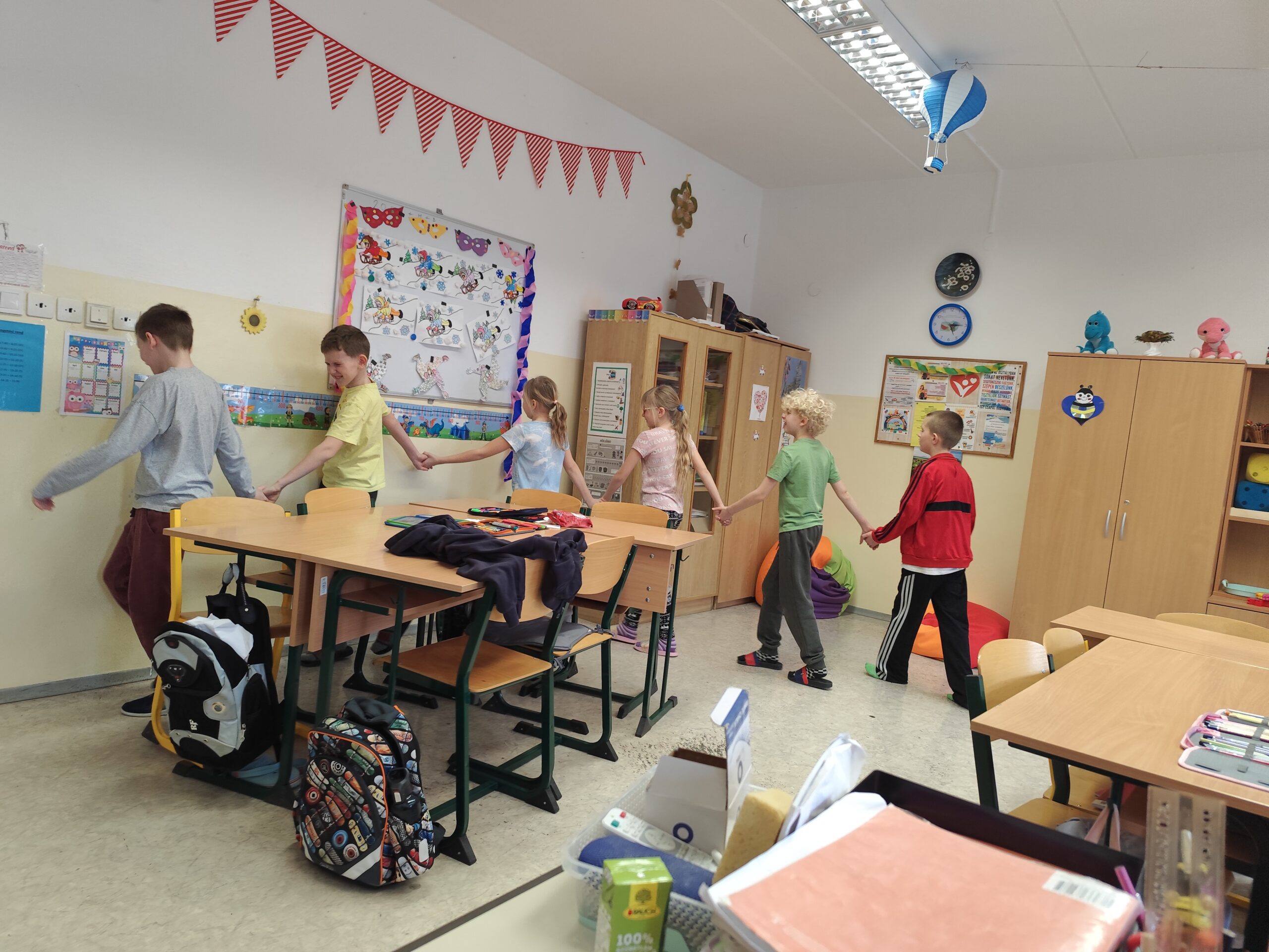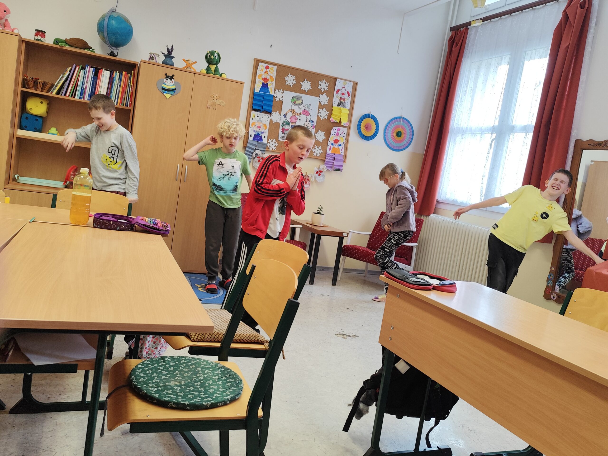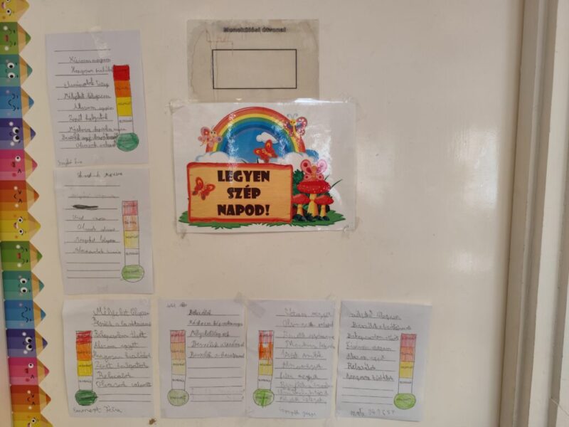 Február hónap témája a megküzdési stratégiák. A témát játékosan dolgoztuk fel. Első játék a Ne keseregj játék volt. Olyan mondatokat kerestünk, amelyekkel egymásnak tudunk segíteni, vigaszt nyújtani, ha mélyponton vagyunk, ha nehézségekkel találjuk szemben magunkat. Majd nehezített gimnasztikai gyakorlatokat végeztek a gyerekek csukott szemmel párban. A Vak kígyó játékkal egymásban kellett megbízniuk. ezután megismerkedtünk az indulathőmérővel. Segítségével megnéztük, ki milyen lelkiállapotban van éppen. Utána egy mondathalmazból kellett kiválasztaniuk olyan mondatokat, amik segítségével a bennük lévő feszültséget tudják csökkenteni. Végül páros gyakorlat következett. Csukott szemmel kellett egymást kivezetni egy labirintusból. Egész hónapban figyelték , kinek milyen színű a hangulata reggel, hogyan tudunk rajta segíteni, ha kell a nap folyamán. Ezekkel a módszerekkel igyekeztem megtanítani, hogyan tudnak a mindennapokban a nehezebb feladatokkal megküzdeni, hogyan tudják magukban oldani a feszültséget.
