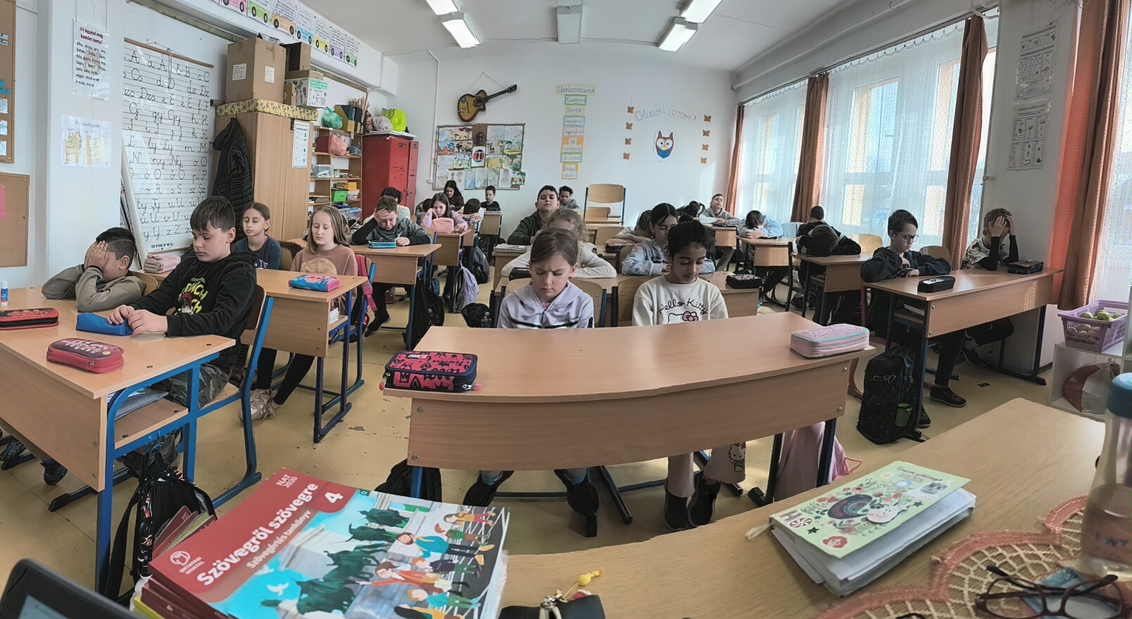 Február 20-án tartottuk a havi Boldogságóránkat. Az Idegenvezetők világnapja 20-23. közé esik, így kis játékot is belecsempésztem ebből az alkalomból. Az óra elején beszélgettünk a kitartásról, bátorságról, kihívásokról, ezek veszélyeiről, a vele járó stresszről is. A gyerekek a saját kis életükből számos példát hoztak, az érzéseikről, félelmeikről számoltak be. Ezt követően meghallgattuk az Ellazulni jaj de jó! – anyagot, és boldogan csinálták a gyakorlatokat. A magabiztosságról beszélgettünk ezek után, mire jó, miért jó ez nekünk? Meghallgattuk az Isnpiráló magabiztosság hanganyagot is.