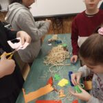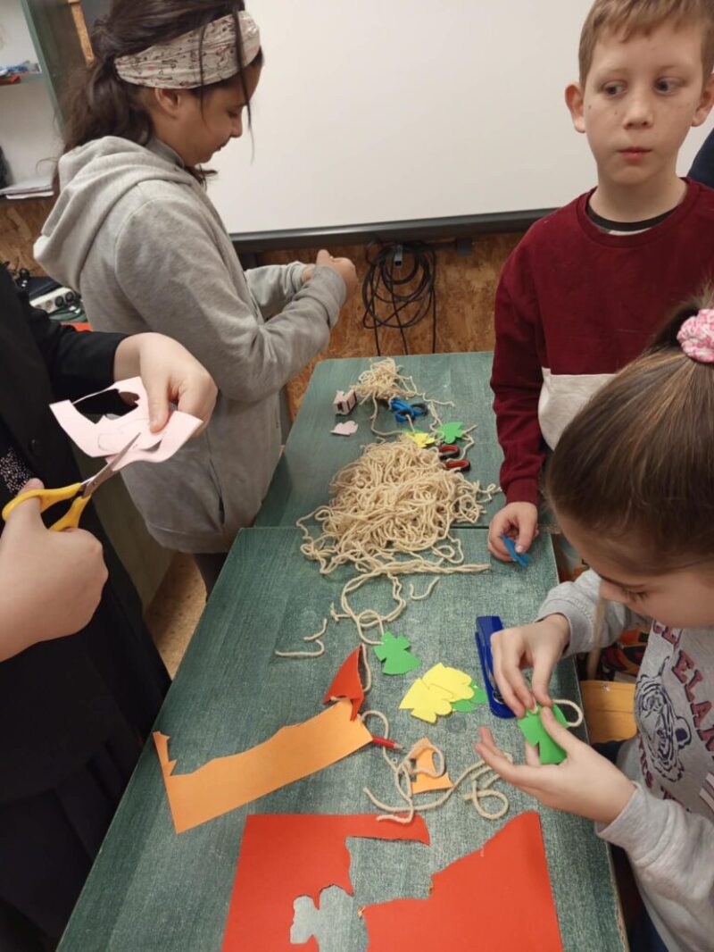 Az óra második részében alkottunk is valamit. Újrahasznosított anyagokból készítettünk tárgyakat. Tojástartóból kis karácsonyfát, díszeket csináltunk. Mindenki nagyon ügyesen dolgozott és közben figyeltünk arra, hogy ne pazaroljuk az anyagokat.