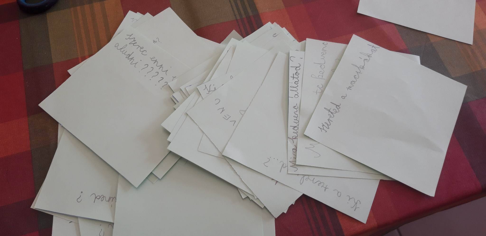 Később kijavítottam a helyesírási hibákat és lamináltam a kártyákat, hogy más osztályok is használhassák, tartósabb legyen.