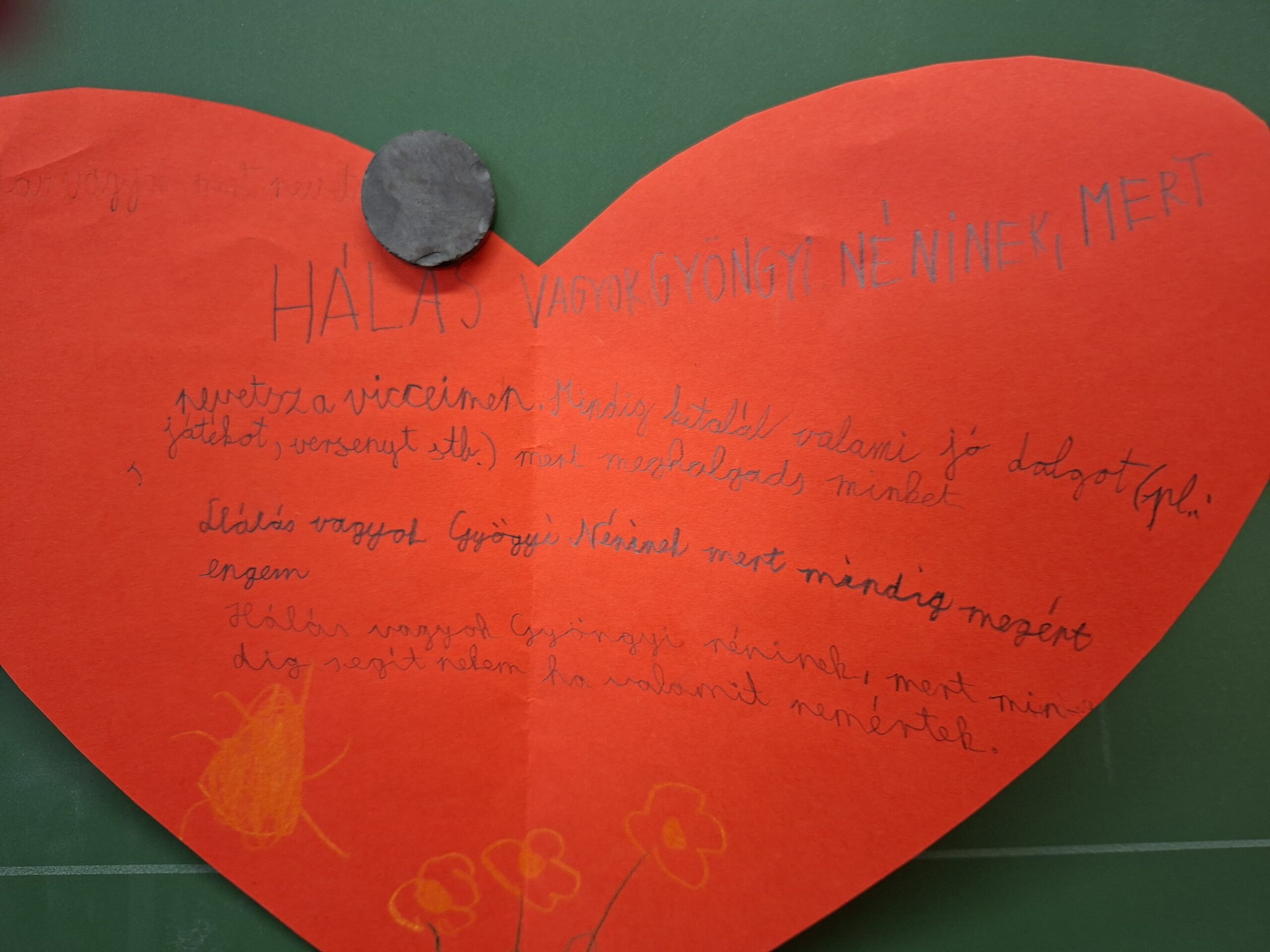 A felső tagozatban mind a három hetedikes osztályban megtartottam az első Boldogságórát. Megismerkedtünk a hála és a kedvesség erősségével. Az önbizalom témakörből az egészséges barátságoké volt a főszere, csoportmunkában összegyűjtötték a gyerekek, hogy mi alapján választanak barátot, vagy mik azok a szempontok, amik fontosak a baráti kapcsolatokban. Végül mindenki megfogalmazta, hogy miért hálás a barátjának.