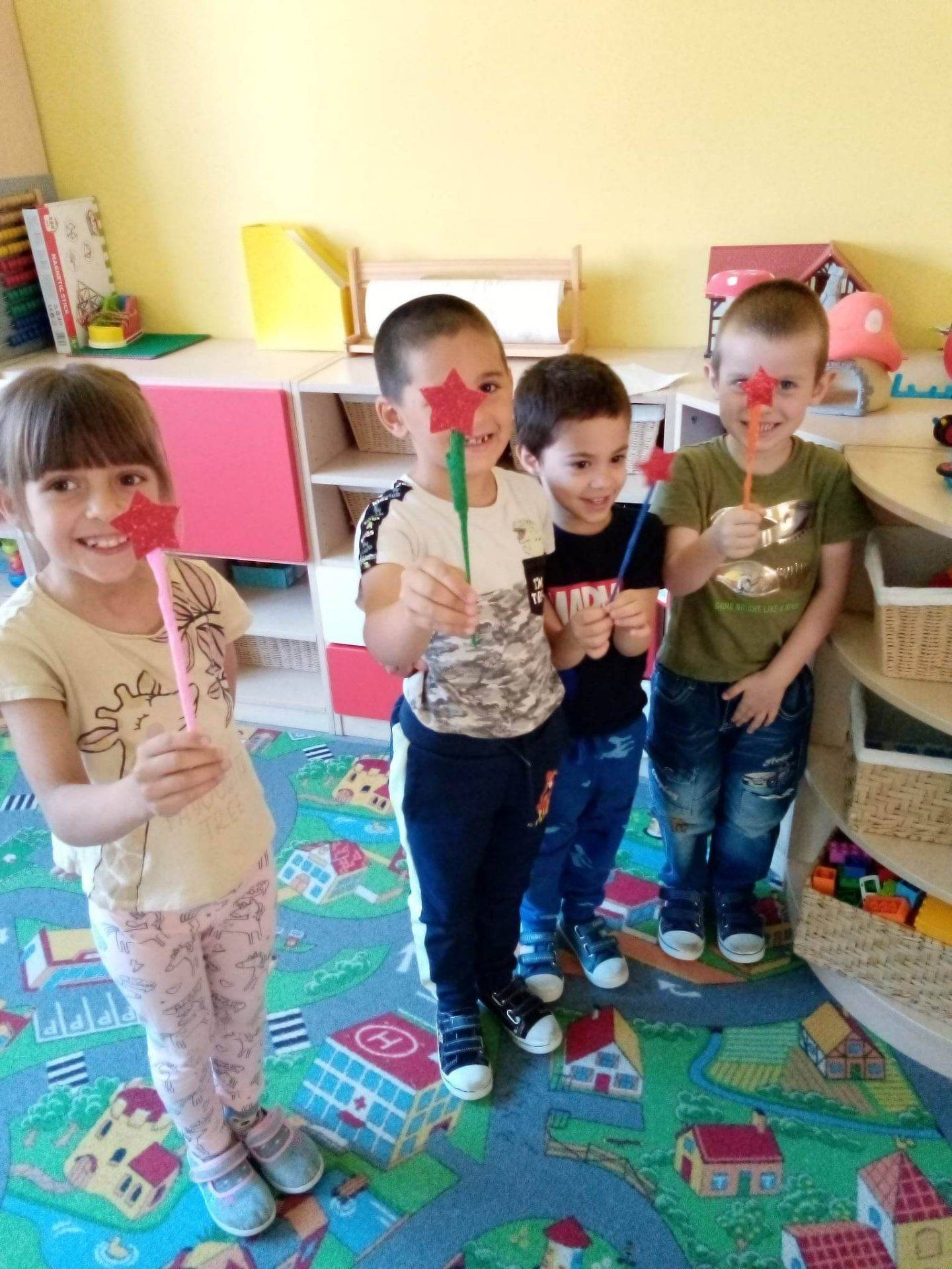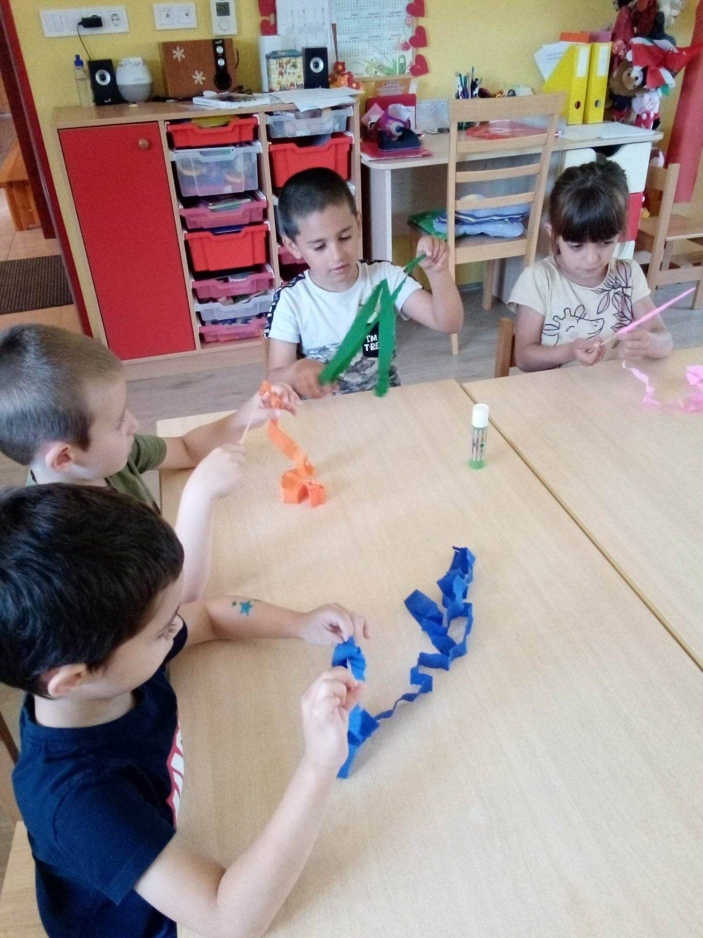 „Boldog nyár varázspálca„ c. feladatot elkészítettük. Nagy oda figyeléssel barkácsolták maguknak a varázspálcát, csillogós csillaggal díszítették, és ki is próbálták. Jó dolgokat kívántak a nyárra maguknak, egymásnak.