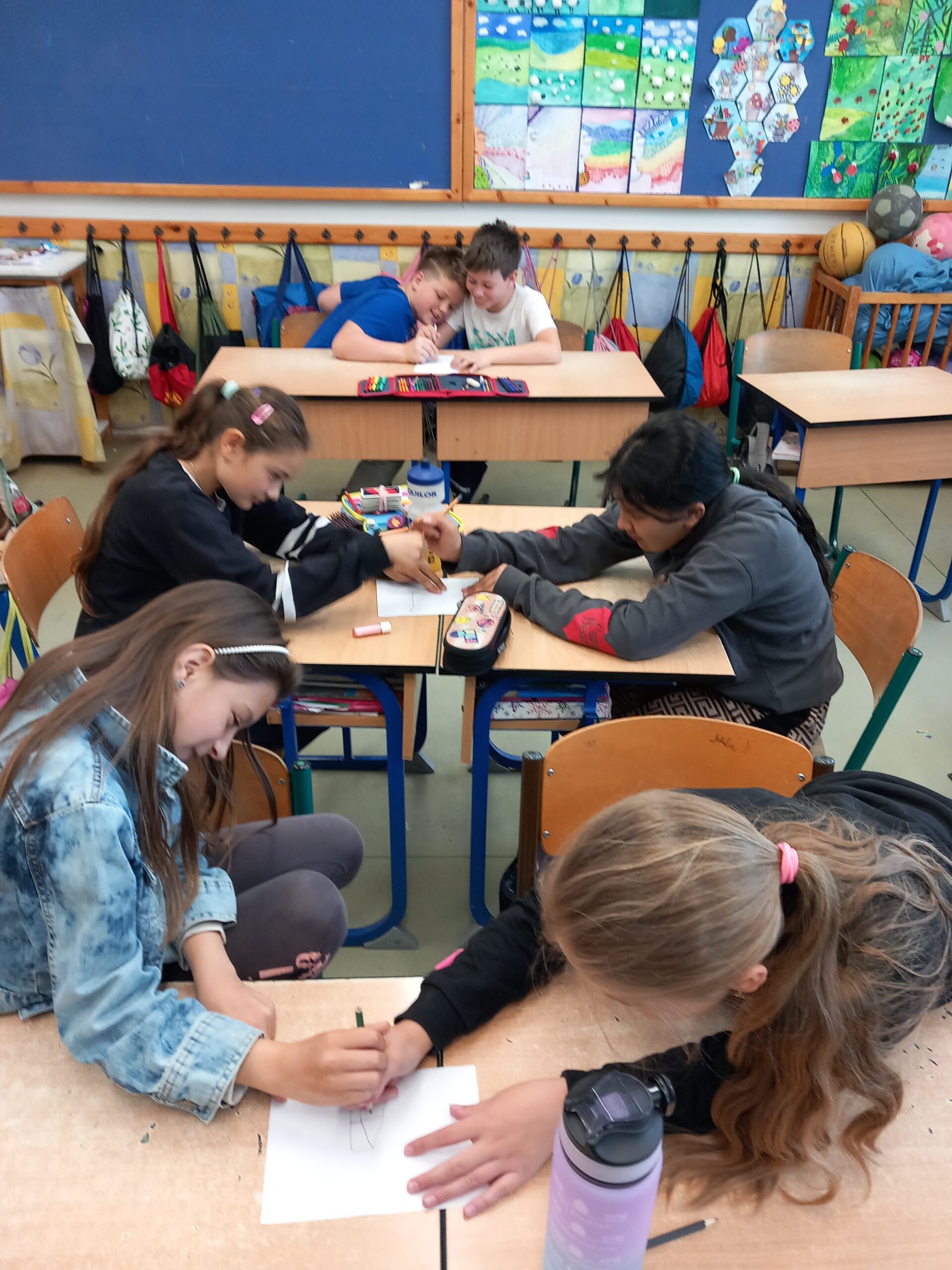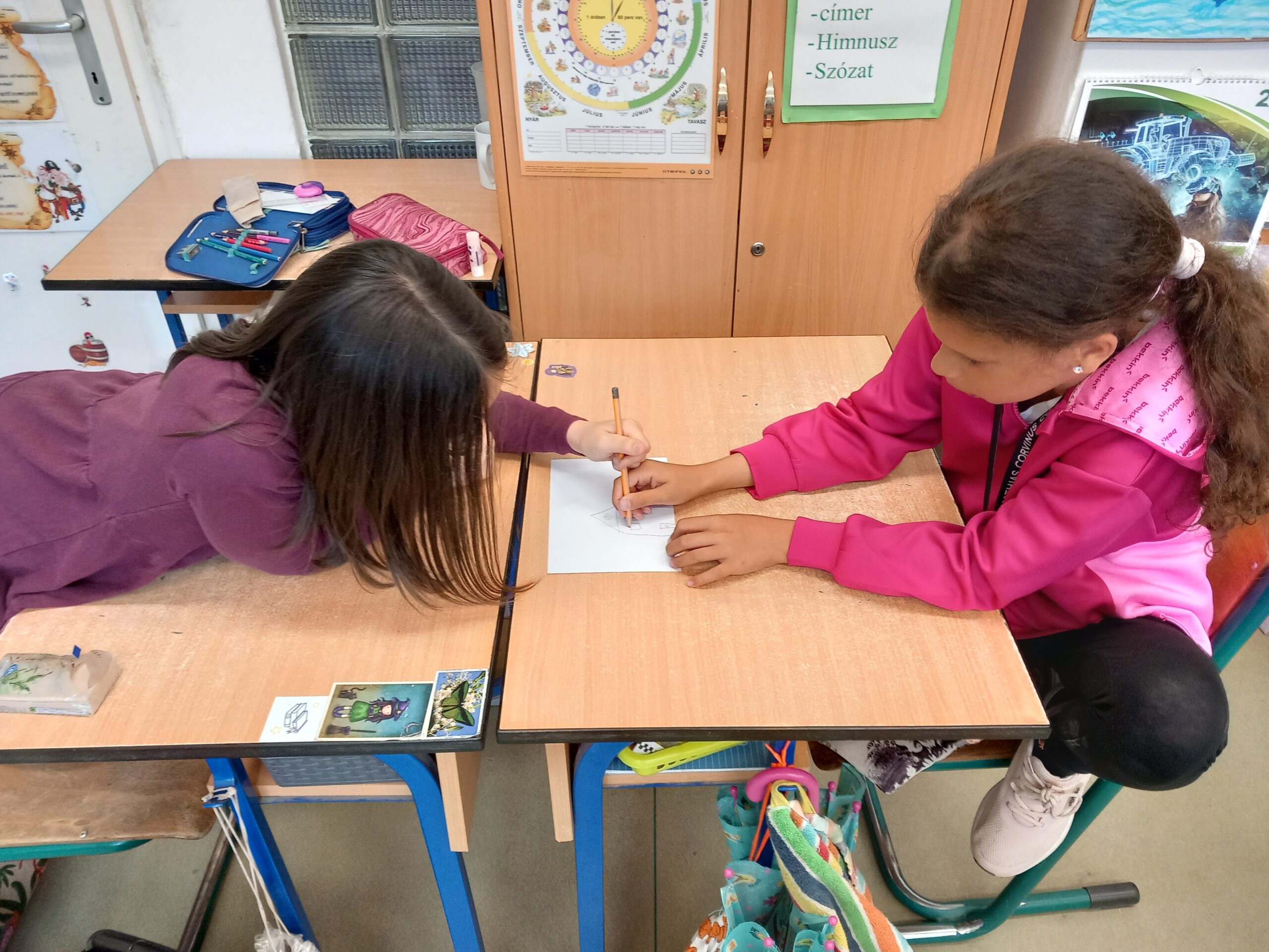 Ebben a hónapban több alkalmunk is volt foglalkozni a programmal. Mindenki elmondta miért hálás, ehhez képet, feliratot is készítettek. A népmese napjához kapcsolódóan mesetúrán vettünk részt, ahol a közeli parkban különböző állomásokon különböző feladatokat kellett végrehajtani a gyerekeknek mesékhez kapcsolódóan. Ehhez mesetarisznyát és menetlevelet is készítettünk. Emellett kipróbáltuk a párban rajzolást is, ami nem is volt egyszerű feladat, és viccesre sikerült.