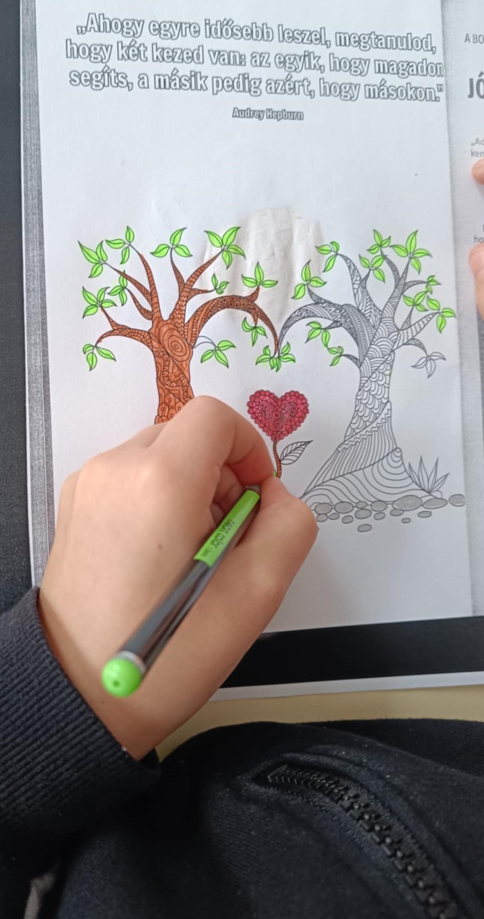 A boldogság óránknak a jó cselekedetek gyakorlása volt a téma. A foglalkozás során a tanulók elgondolkodtak azon, mivel tudnak a legtöbbet tenni önmagukért, majd gondolataikat a virágszirmokba írták bele. A gyerekek válaszaiban megjelent az önelfogadás, a pihenés, a tanulásra való odafigyelés, valamint a kedvesség és türelem fontosséga. A feladat végén a gyerekek öleléssel zárták az órát, ezzel is erősítve az összetartozás és biztonság érzését. 🙂
