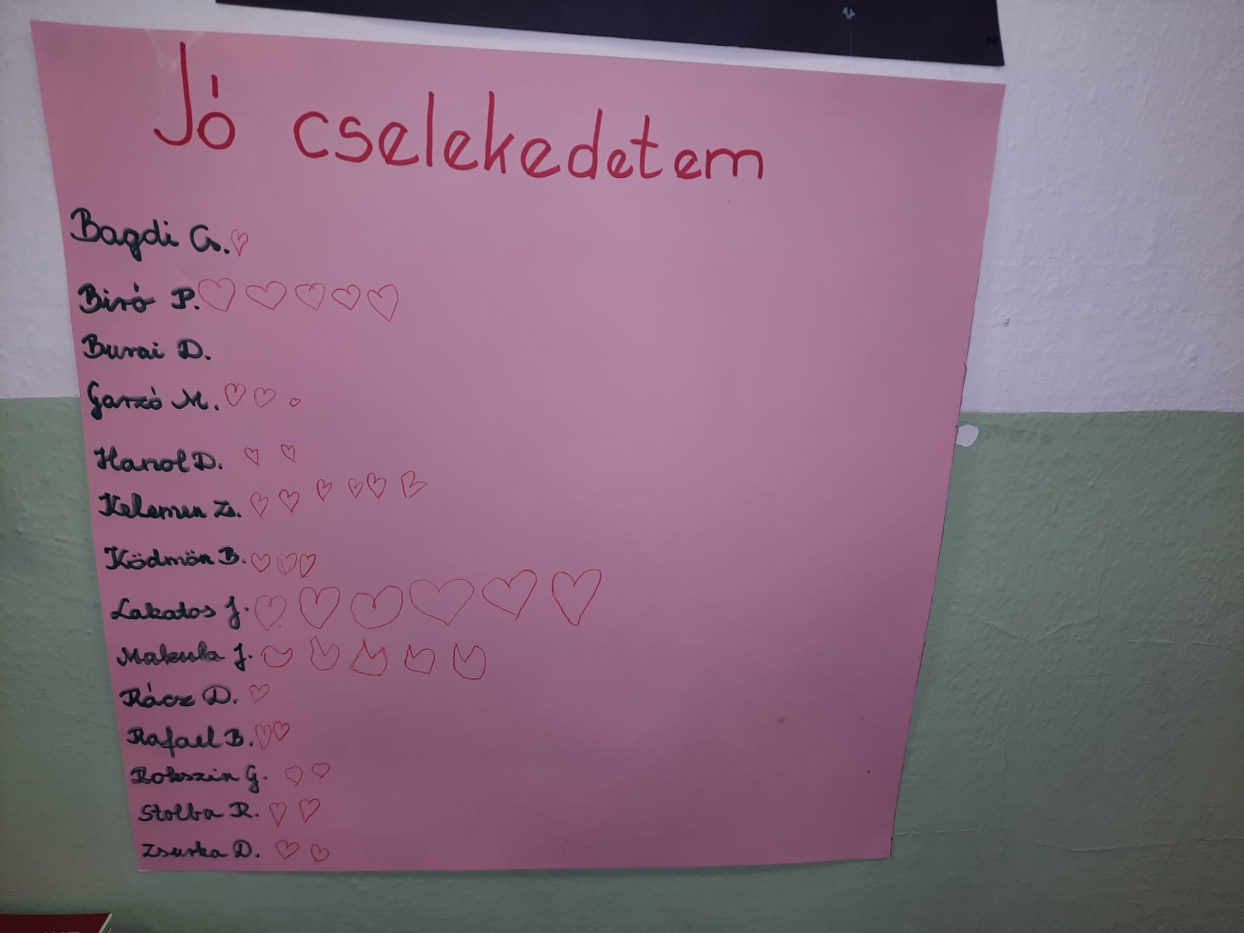 A jó cselekedet szívecskéket tovább gyűjtötték és írhatták a táblázatba. Nagyon szép és meghitt hónap volt, nagyon figyeltek és segítették egymást.