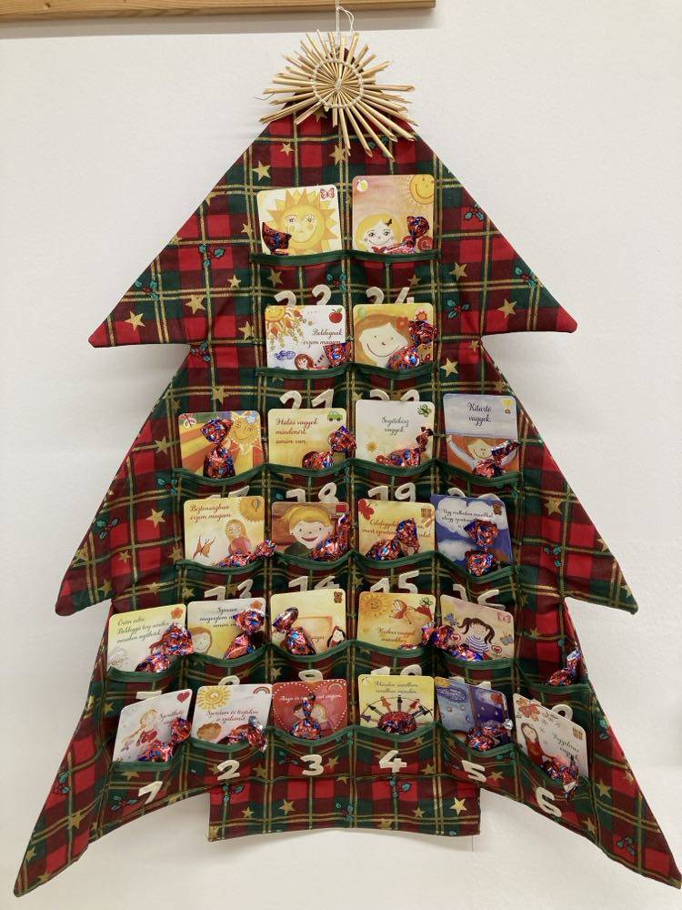 Az idei Adventi naptárunkat a Pozitív gyerek vagyok, kártyacsomag lapjai díszítik. Ebből húzunk minden reggel. Kedves vagyok, barátságos, segítőkész. A gyermekek nagy izgalommal várják, milyen lap jut aznapra. Délben megbeszéljük, hogy sikerült teljesíteni délelőtt az aznapi jó cselekedetet. Büszkén sorolják, hogy ki kivel, mivel tett jót.