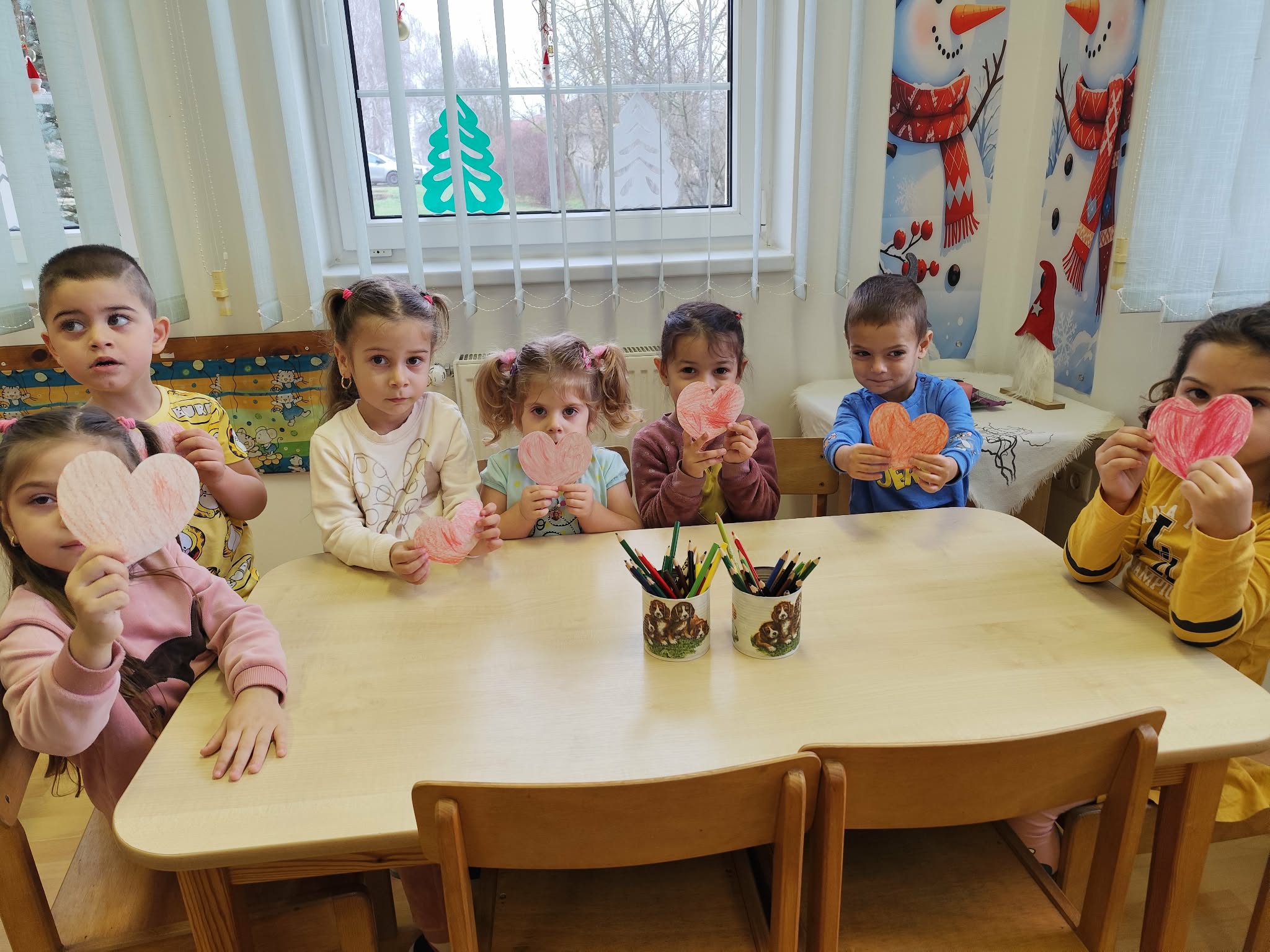 Ezt követően asztalhoz ültünk, mindenki kapott egy előre kivágott papír szivecskét, amelyet pirosra színeztek. Később elmondták, hogy kinek, és miért adják oda a szivecskéjüket.