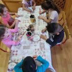 A munkafüzetből feladatokat oldottunk meg, majd jóság szívecskét színeztünk és megajándékozták egymást vele a gyerekek.
