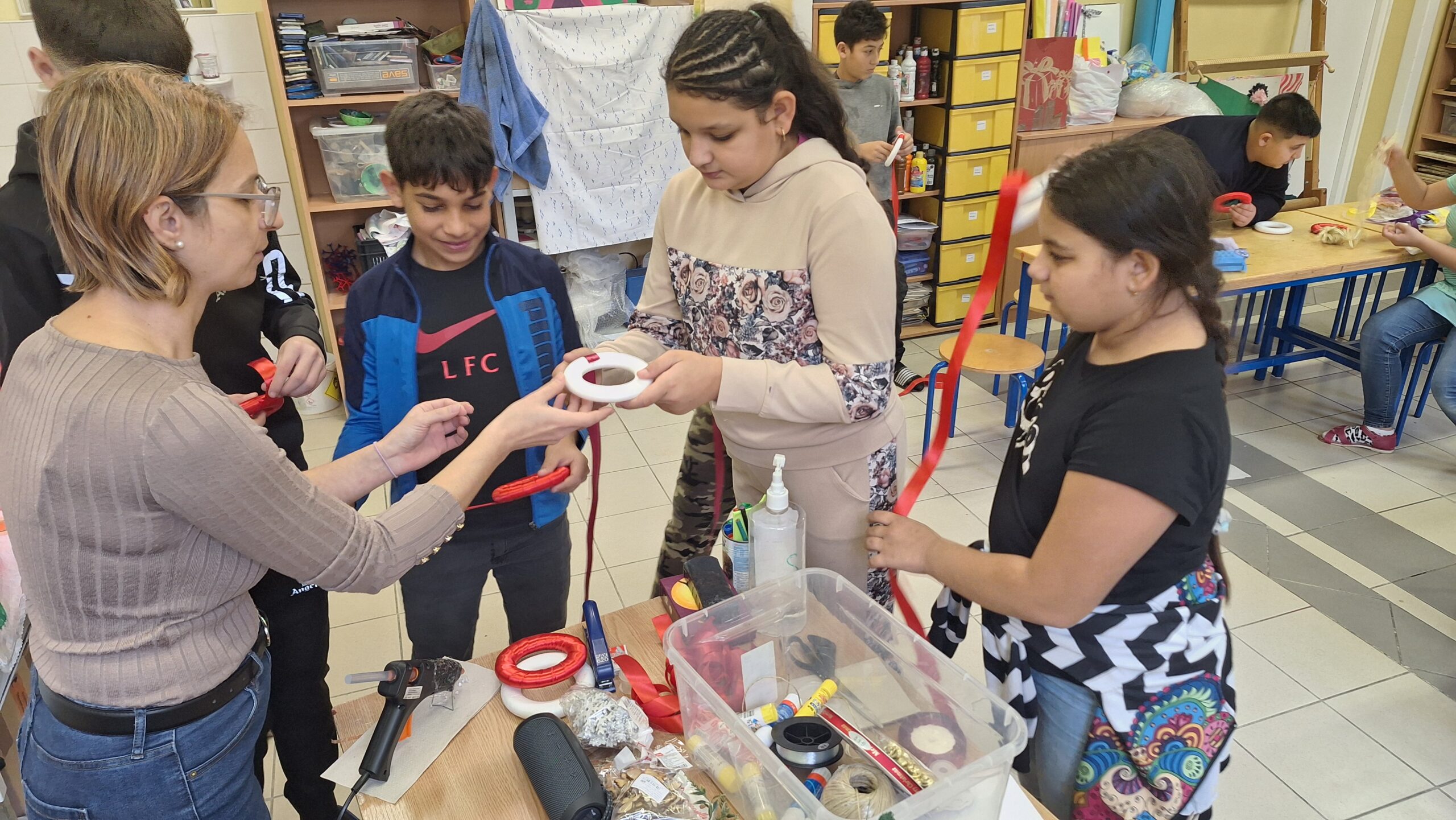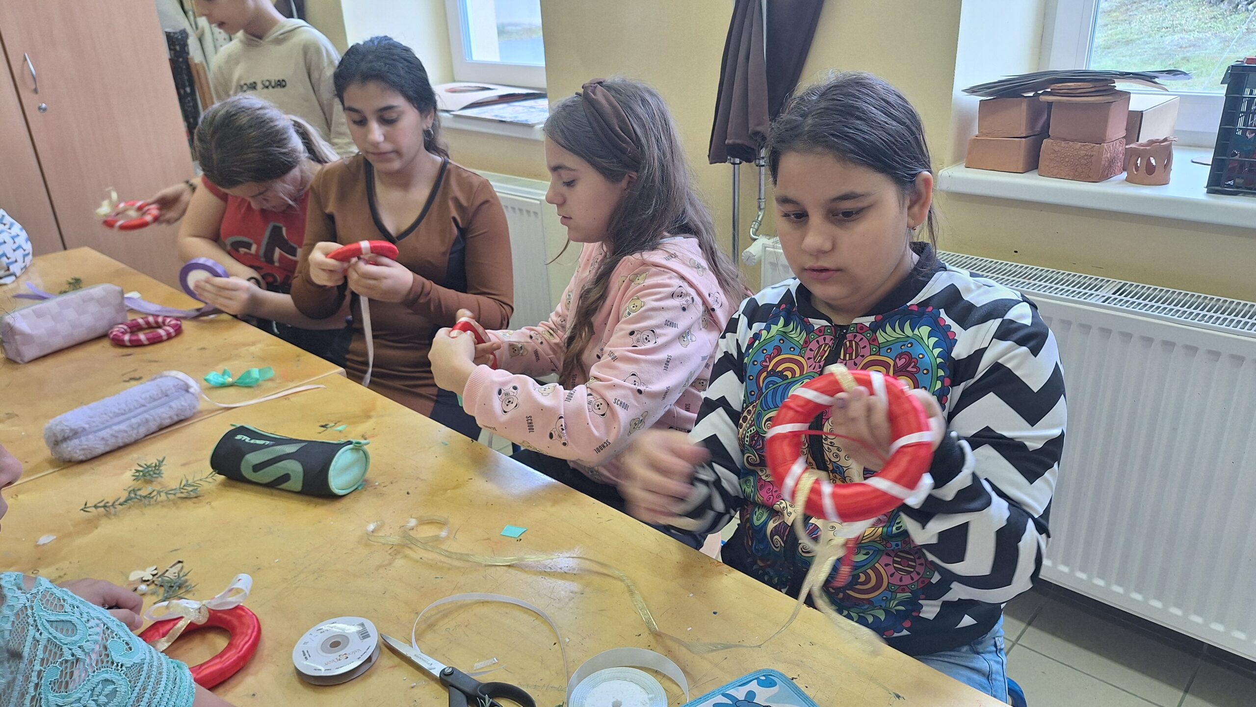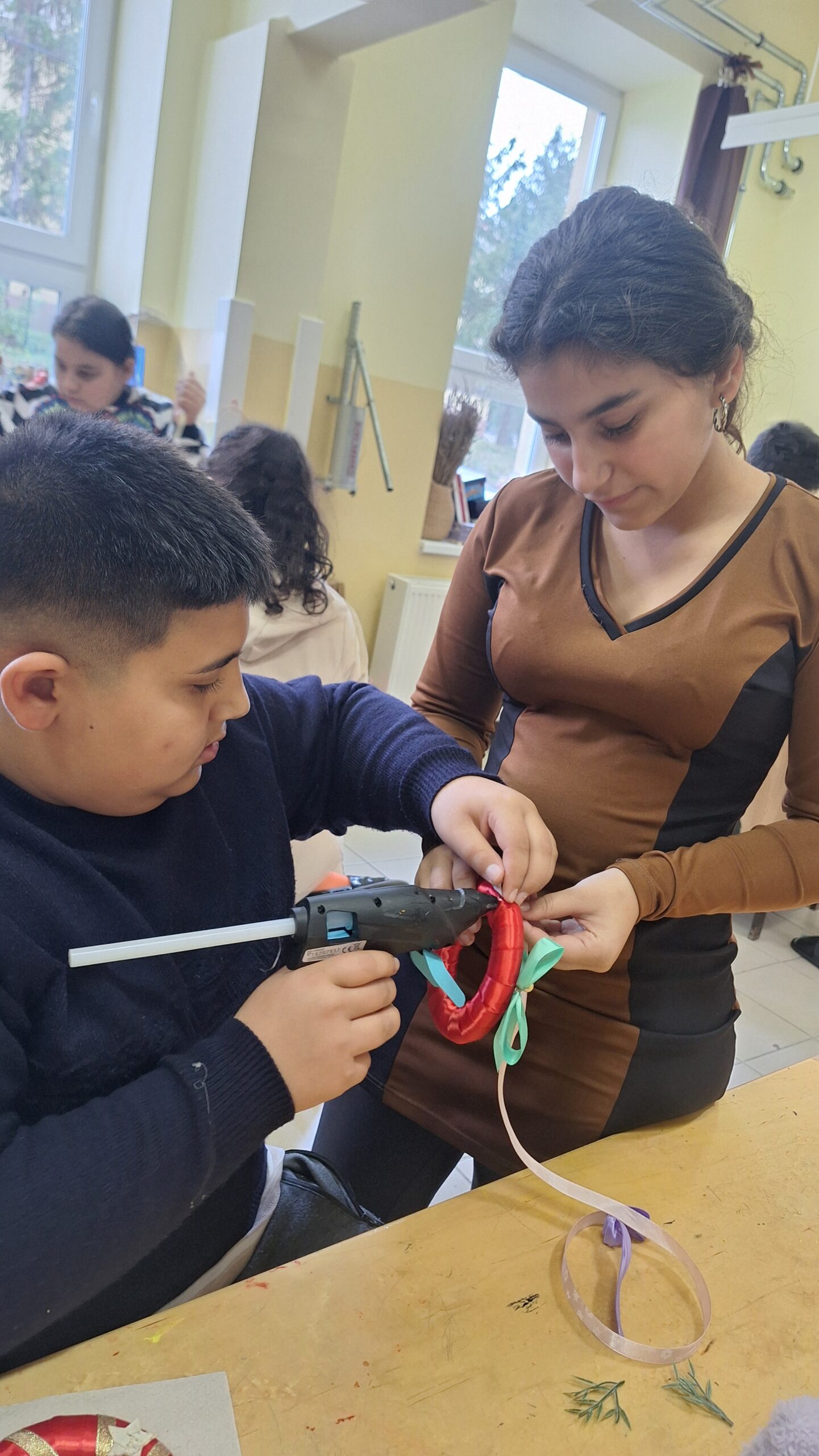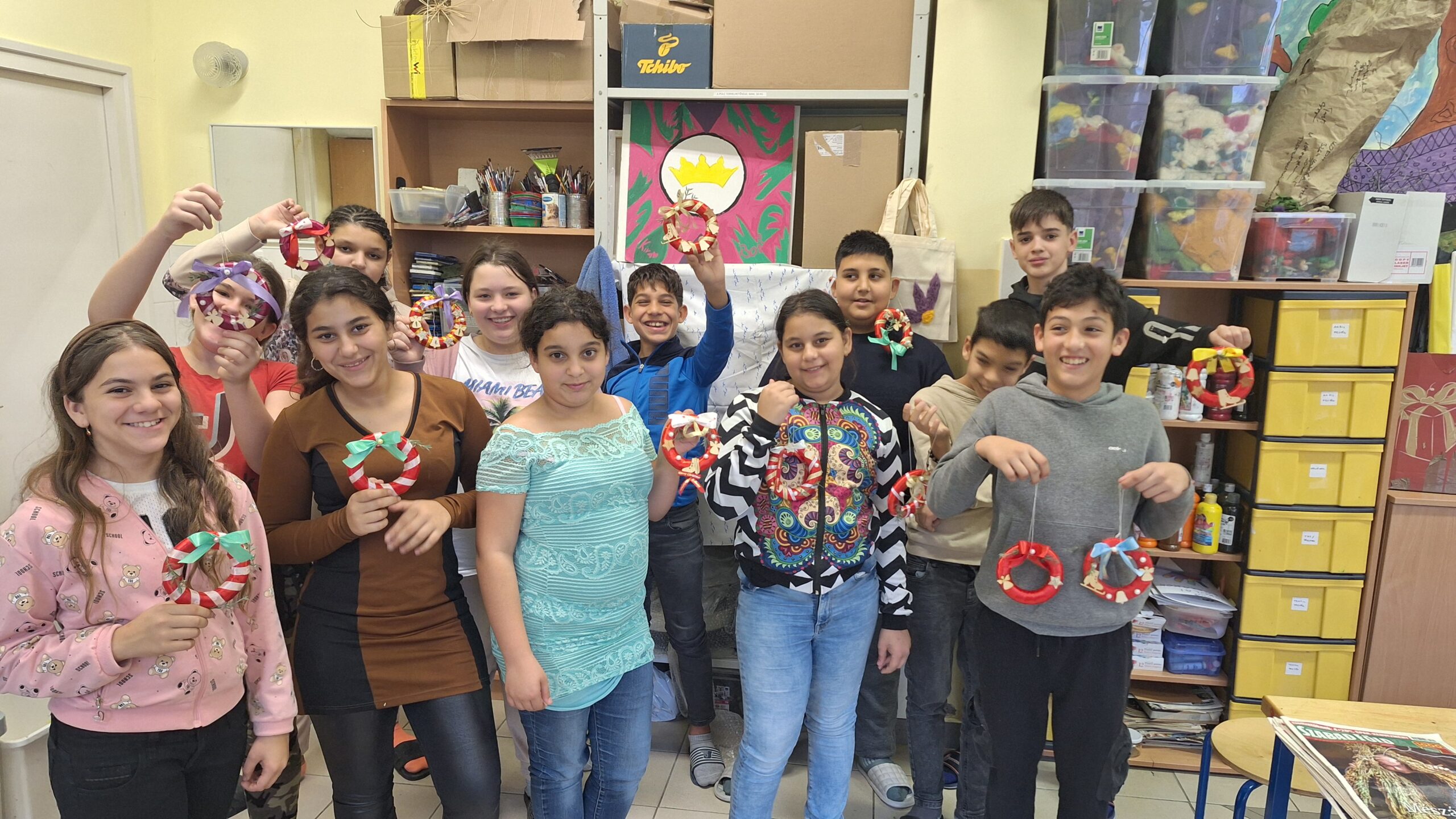 A diákok kézműves karácsonyfa díszeket készítettek a templomban felállított iskolások karácsonyfájára.