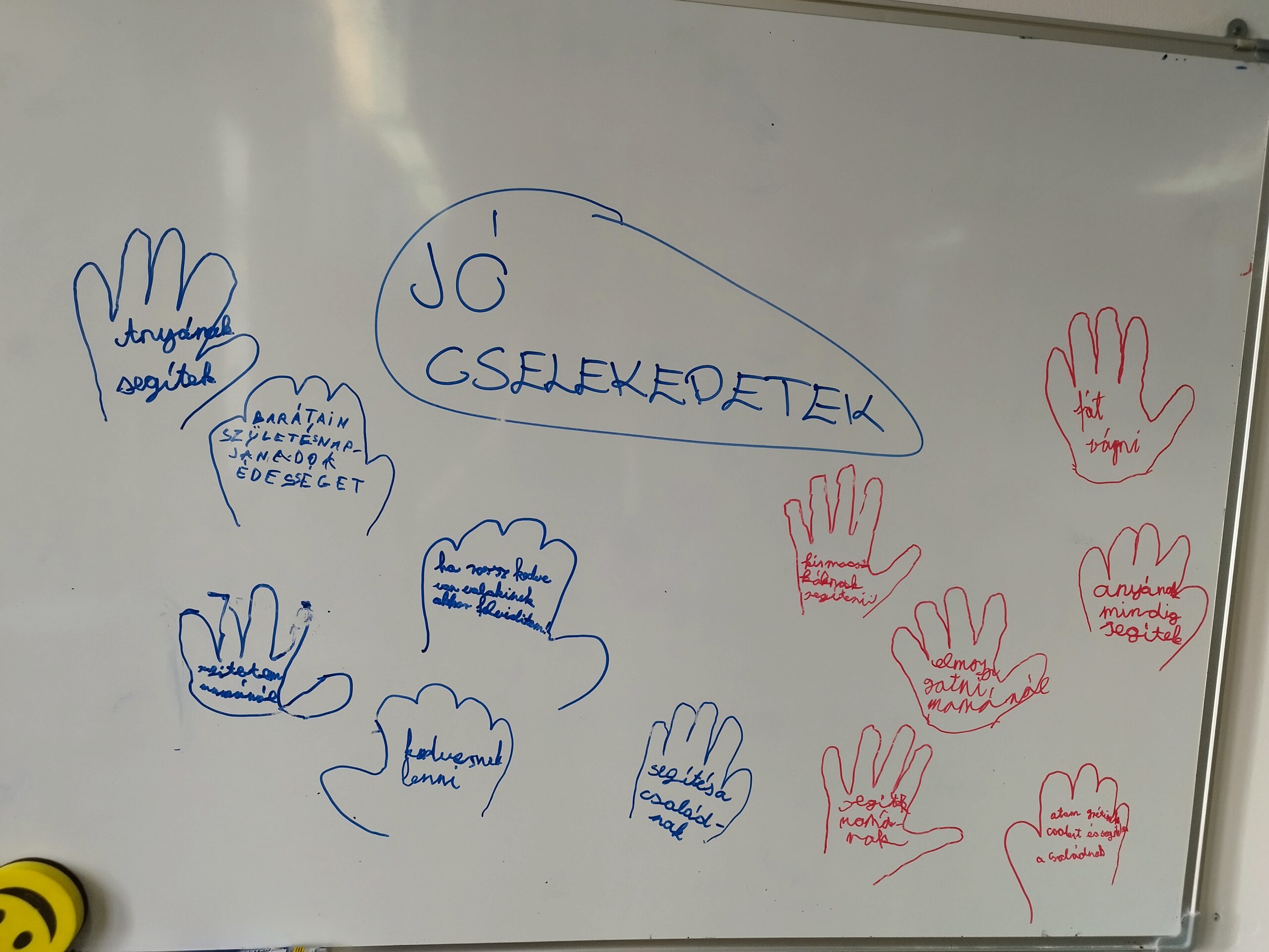 Az órát a firka relaxációs gyakorlattal kezdtük. A gyerekek nagyon élvezték, sikerült ellazulniuk tőle. Ezt követően beszéltünk arról, hogy mit tudunk tenni a társainkért, hogyan tudunk segíteni. Személyes élményeket meséltek, hogy kiknek segítettek, hogyan. Már a hónap elején részt vettünk csoki és játék gyűjtésben, illetve a faluban apró, kézzel készített ajándékokkal kedveskedtünk a járókelőknek. Az órát a Jó emberré csak a szívemmel válhatok című dalra táncolással zártuk.