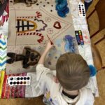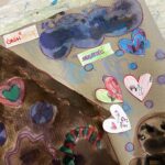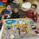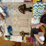 A gyerekekkel nagy kartonra készítettünk a napköziben mézeskalács házakat, amiket kifestettek, majd olyan szavakkal díszítettek, ami a házikókban mindenkinél megtalálhatóak: szeretet, segítség, nevetés, öröm és így tovább.