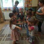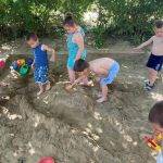 A Boldogságóra utolsó témája a fenntartható boldogság témabevezető játéka élvezetes volt mindenki számára. A kezdeti bizonytalanság után egyre bátrabban mentek végig a „szeretetfolyosón”, megbíztak egymásba. Nagy derültséget okozott a seprűtánc is. Egy igazán jó hangulatú ès közösségkovácsoló játék alakult ki, amit biztos játszani fogunk majd középső csoportban is. Mivel beköszöntött az igazi nyár, sok időt töltünk együtt a szabadban mindenféle ” boldogságfokozó” tevékenység végzésével. A homokvár építés mellett napi szinten pancsolunk, dinnyét ettünk és sokat napfürdőztünk.
