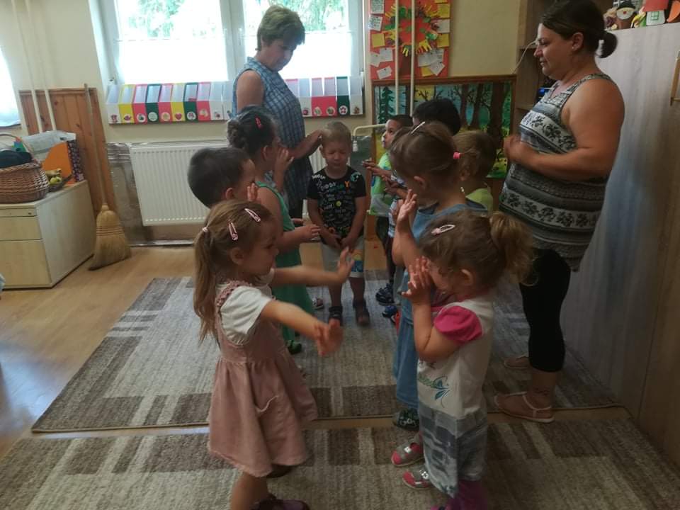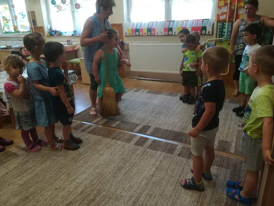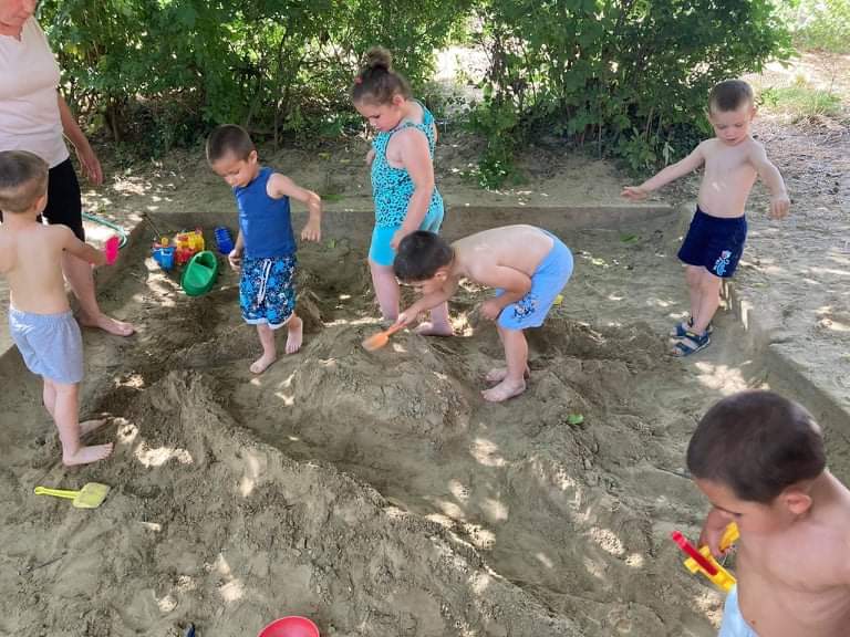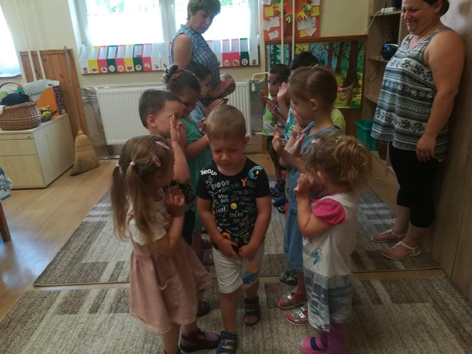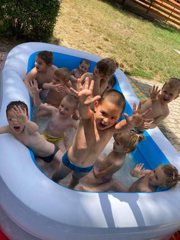 A Boldogságóra utolsó témája a fenntartható boldogság témabevezető játéka élvezetes volt mindenki számára. A kezdeti bizonytalanság után egyre bátrabban mentek végig a „szeretetfolyosón”, megbíztak egymásba. Nagy derültséget okozott a seprűtánc is. Egy igazán jó hangulatú ès közösségkovácsoló játék alakult ki, amit biztos játszani fogunk majd középső csoportban is. Mivel beköszöntött az igazi nyár, sok időt töltünk együtt a szabadban mindenféle ” boldogságfokozó” tevékenység végzésével. A homokvár építés mellett napi szinten pancsolunk, dinnyét ettünk és sokat napfürdőztünk.