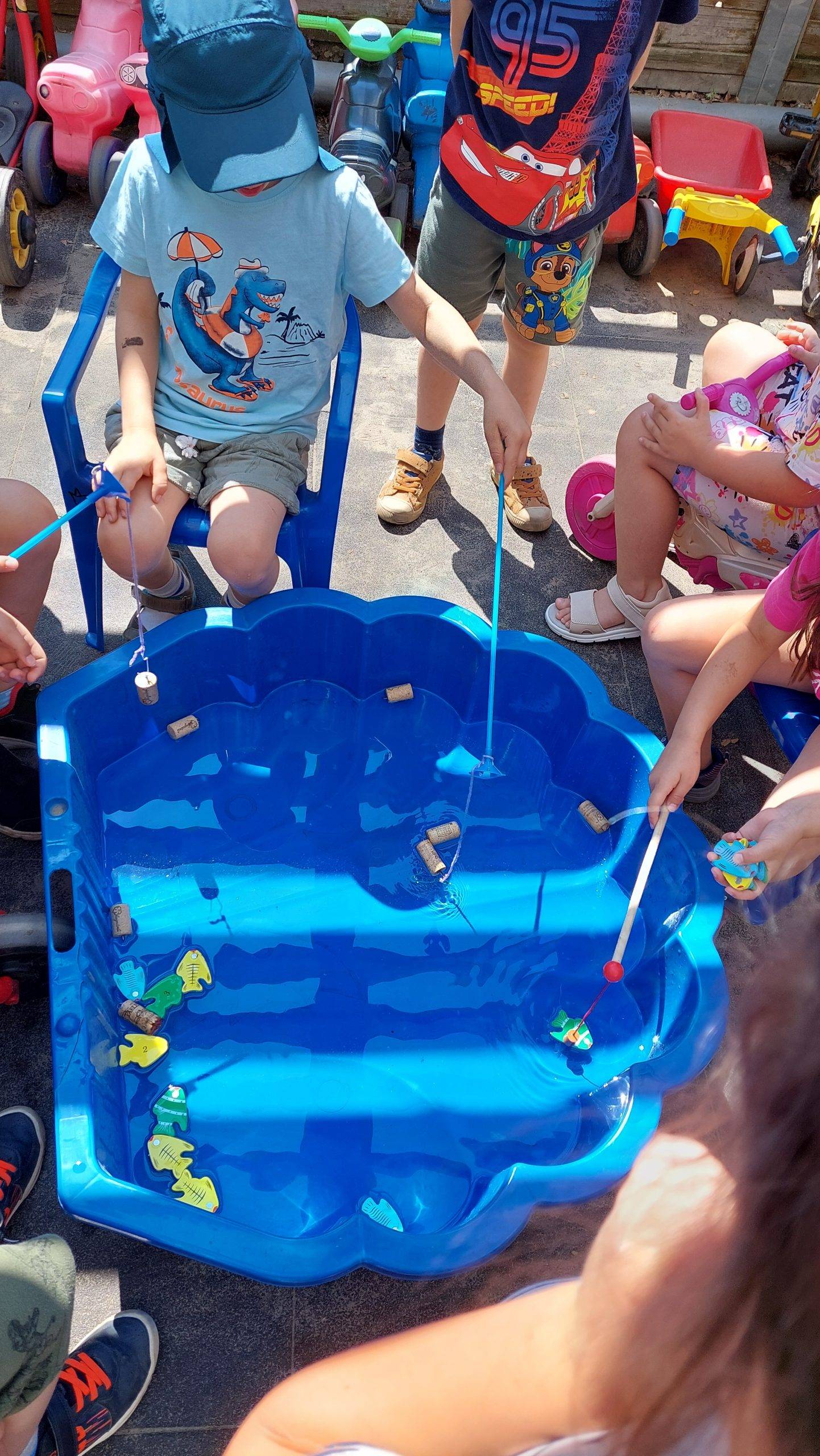 Pénteken reggel már többen kérték a hála-kert színezőt, a kicsiknek segítettem a virágokat kivágni, így gyorsabban haladtak. A nagyoknak adtam színezőt, néhány kisebb is érkezett az asztalhoz, a feladatlapból színeztek, és rajzoltak a lépcsőfokokra ragasztott jeleket, illetve a legkedvesebbet le is kellett rajzolni. Folytattuk Tina történetét, amelyben Tina küzd barátnőjéért, aki nagyon rosszul érzi magát a másik iskolában. Az udvaron a kiskagyló medencét horgászos játéknak alakítottuk ki.