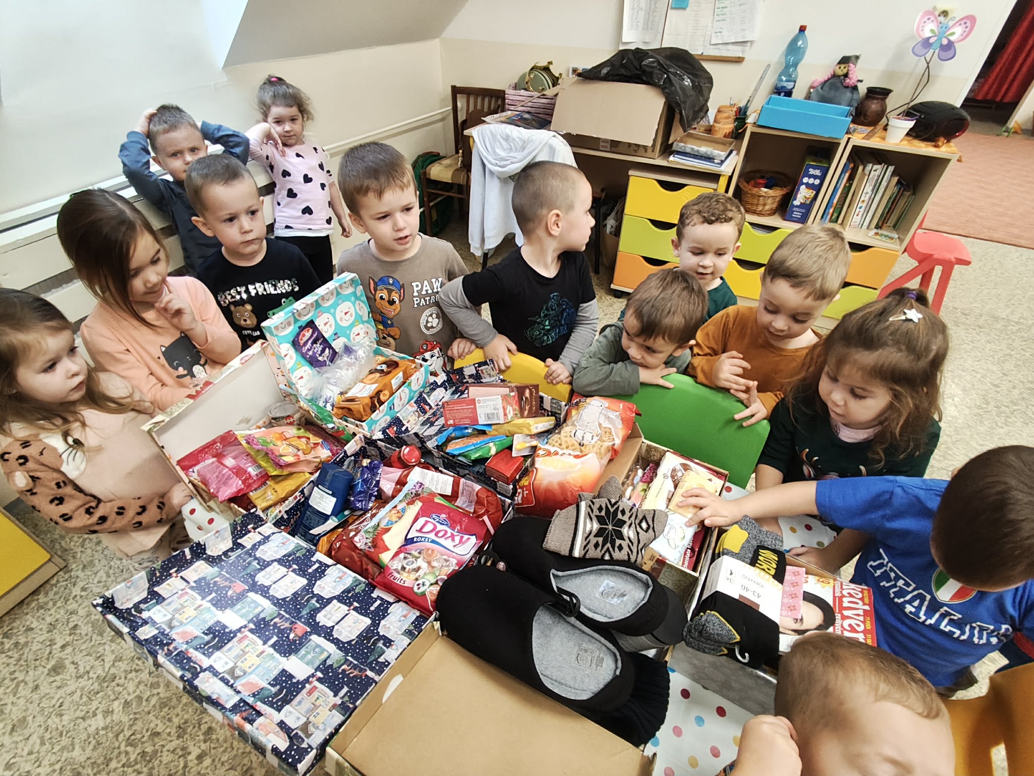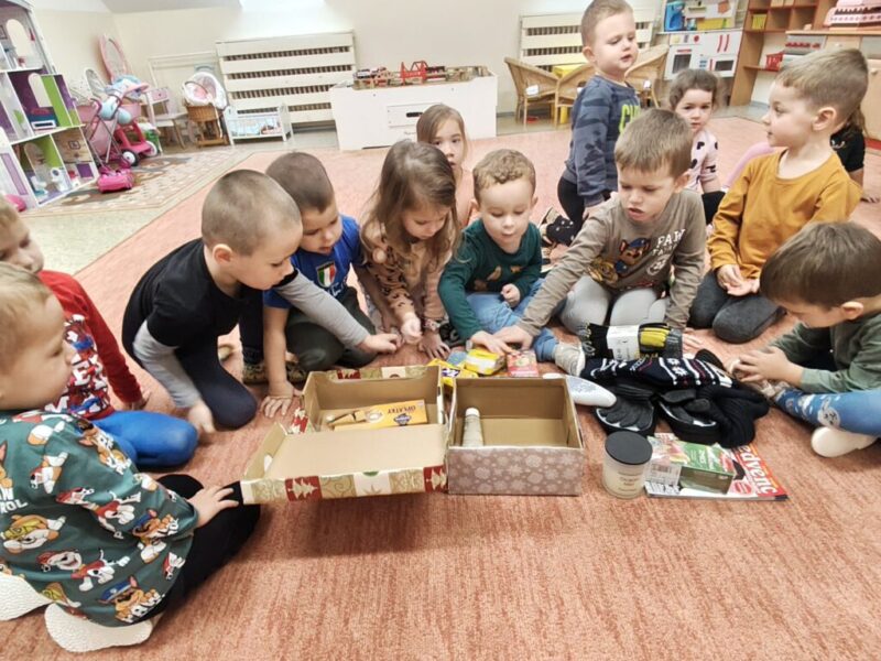 7. Szülők bevonása – ,, Egy cipősdoboz szeretet ,, – 64 dobozt töltöttünk meg, amelyeket az