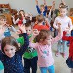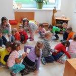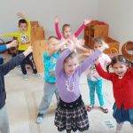 A gyermekeket képzeletbeli kirándulásra hívtam. Dramatikus játék során elutaztunk egy erdőbe, ahol a fák megtornáztattak bennünket.