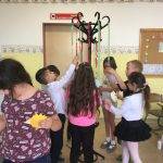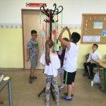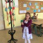 Az én osztályom nagyon szeret beszélgetni, mindig rengeteg mondanivalójuk van. Így ezt az órát is beszélgetéssel kezdtük. Arról beszélgettünk, kinek milyen jó emléke van a tanévről. Mi volt igazán jó, mitől volt jó? Hogyan érezték magukat a tanév során. Szóban elkészítettük a boldogságábécét. Ezután meséltem nekik arról a galaxisról, ahol a Bölcs Galaxisfa él. Megbeszéltük milyennek képzelik ezt a fát, mitől lehet bölcs a fa, hogyan segítheti a galaxis lakóit. Végül megalkottuk a saját galaxisfánkat. Mindenki készített 2-3 falevelet, amelyre bölcs tanácsokat írt arra az esetre, ha valaki elszomorodna. Amikor elkészültek a levelekkel, felcsiptették a „fára”. Mikor mindenki levelei a fán voltak, bekötött szemmel választhattak a fa levelei közül, és felolvasták a többieknek a jó tanácsokat. Végül meghallgattuk a hónap dalát.