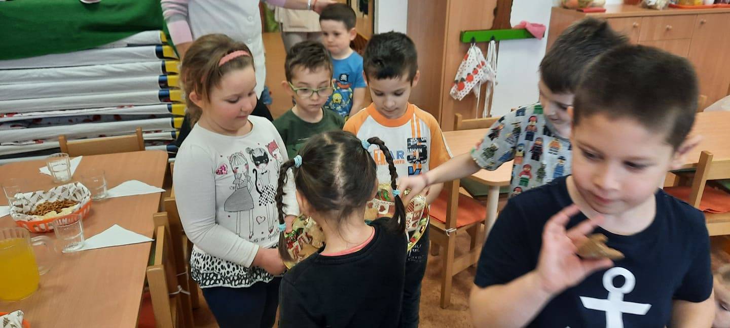 Az egyik anyuka küldött a csoportnak egy kosár mézeskalácsot. Mivel kevesen voltunk, láttuk, hogy sok lesz ez nekünk, ezért a szomszéd csoportot megvendégeltük vele, ők pedig egy kis sós sütivel kedveskedtek nekünk cserébe, meghálálták a jószívűségünket.