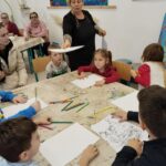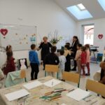December 18-án az óvodásokat meghívtuk a művészet iskolánkba, egy játékos “ Adni jó!” délutáni foglakozásokra, ahol beleláttak a gitártanulás rejtelmeibe és a képzőművészeti órák kreatív foglalkozásaiba. Persze nem maradt el a tánc az ének. Kézlazító gyakorlatokkal segítettük, hogy lazább legyen a ceruzafogás. Majd a Télapó csizmája című mesét dolgoztuk fel. Közben elsajátították a pasztellkréta használatát. Majd vidám énekléssel zártuk a napot. A szülők is részt vettek a délutáni foglalkozásokon.
