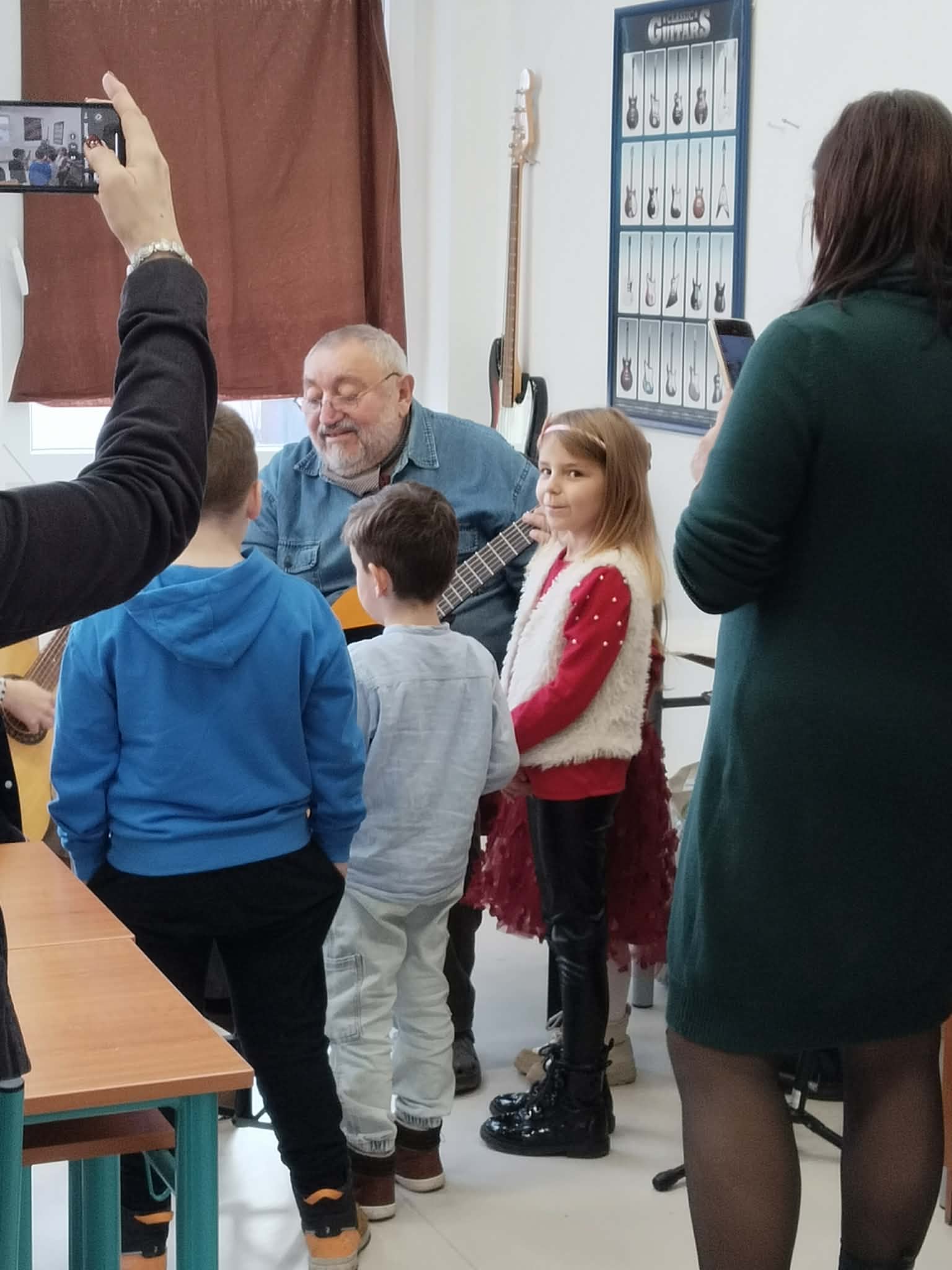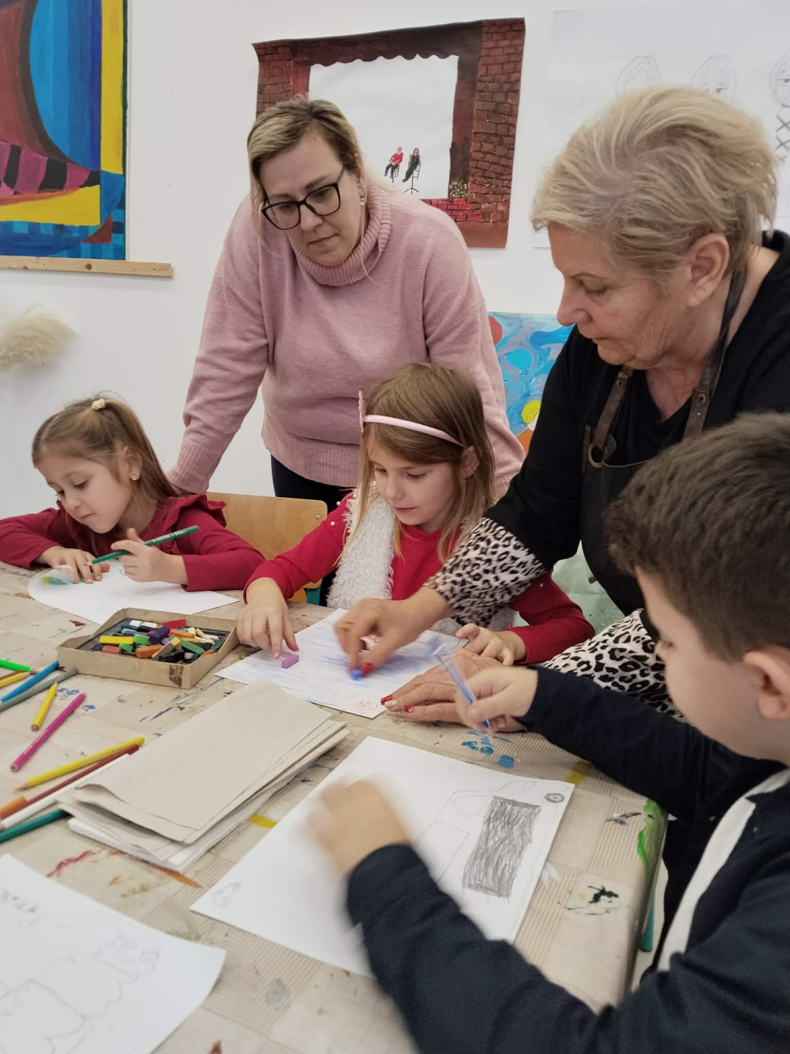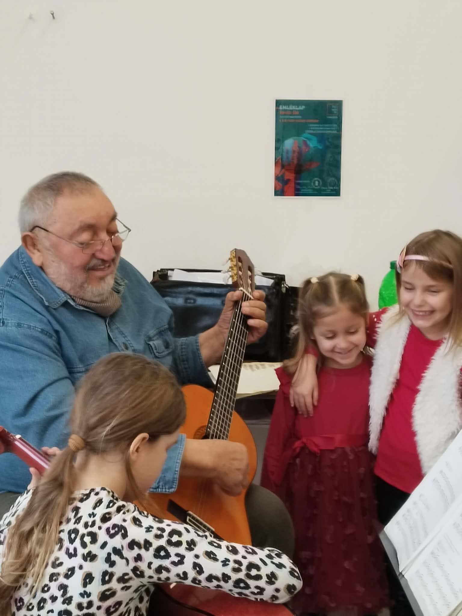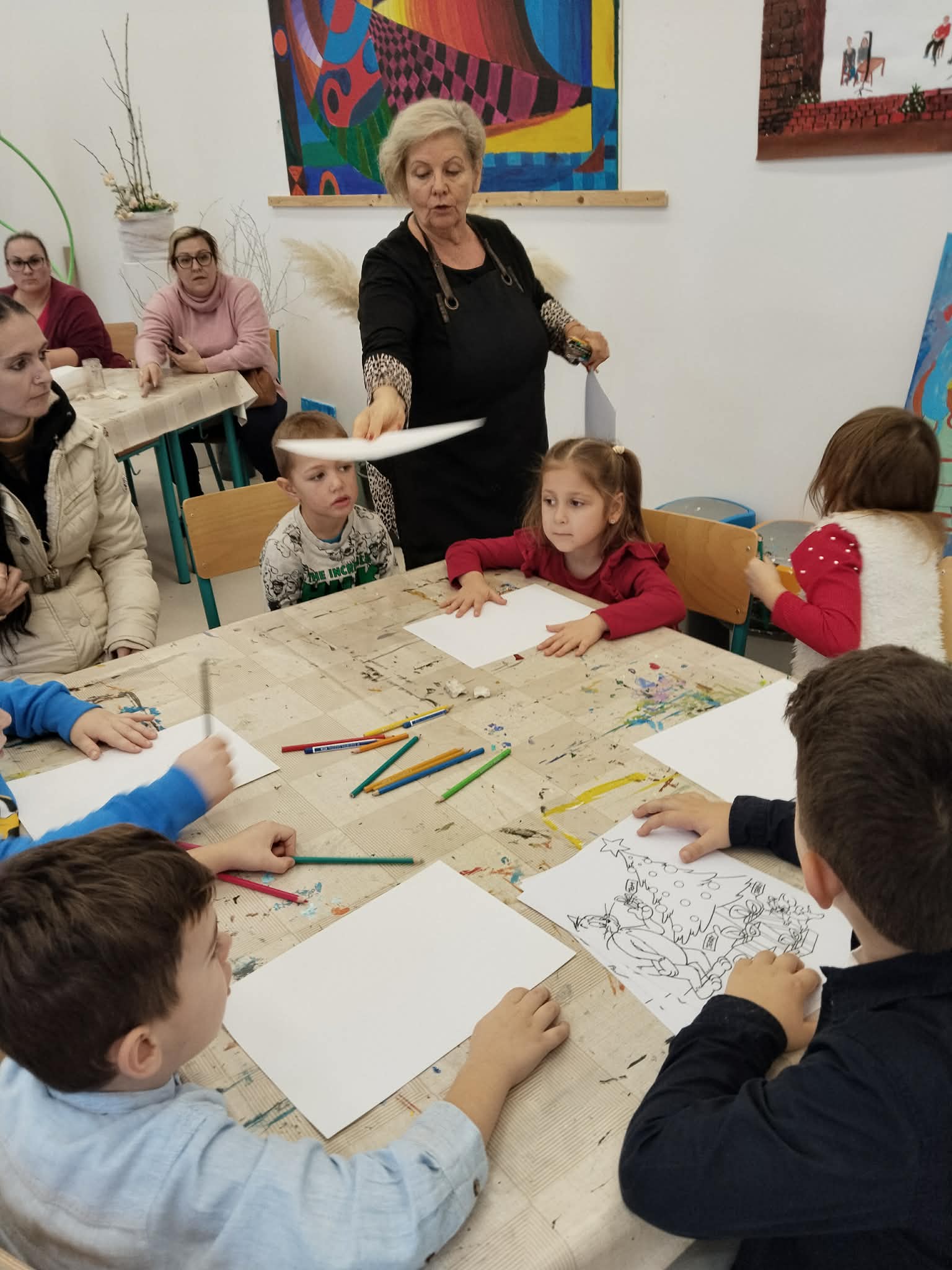 December 18-án az óvodásokat meghívtuk a művészet iskolánkba, egy játékos “ Adni jó!” délutáni foglakozásokra, ahol beleláttak a gitártanulás rejtelmeibe és a képzőművészeti órák kreatív foglalkozásaiba. Persze nem maradt el a tánc az ének. Kézlazító gyakorlatokkal segítettük, hogy lazább legyen a ceruzafogás. Majd a Télapó csizmája című mesét dolgoztuk fel. Közben elsajátították a pasztellkréta használatát. Majd vidám énekléssel zártuk a napot. A szülők is részt vettek a délutáni foglalkozásokon.