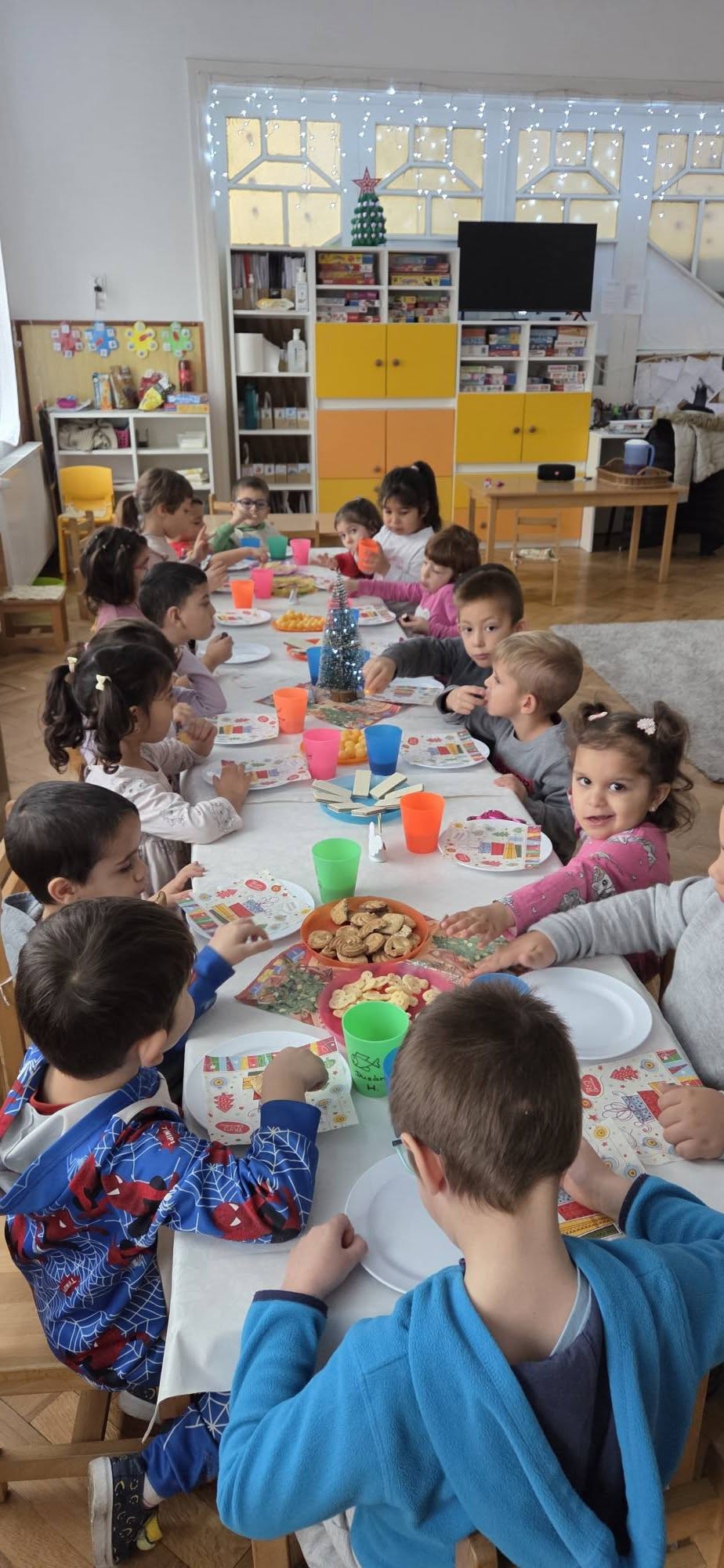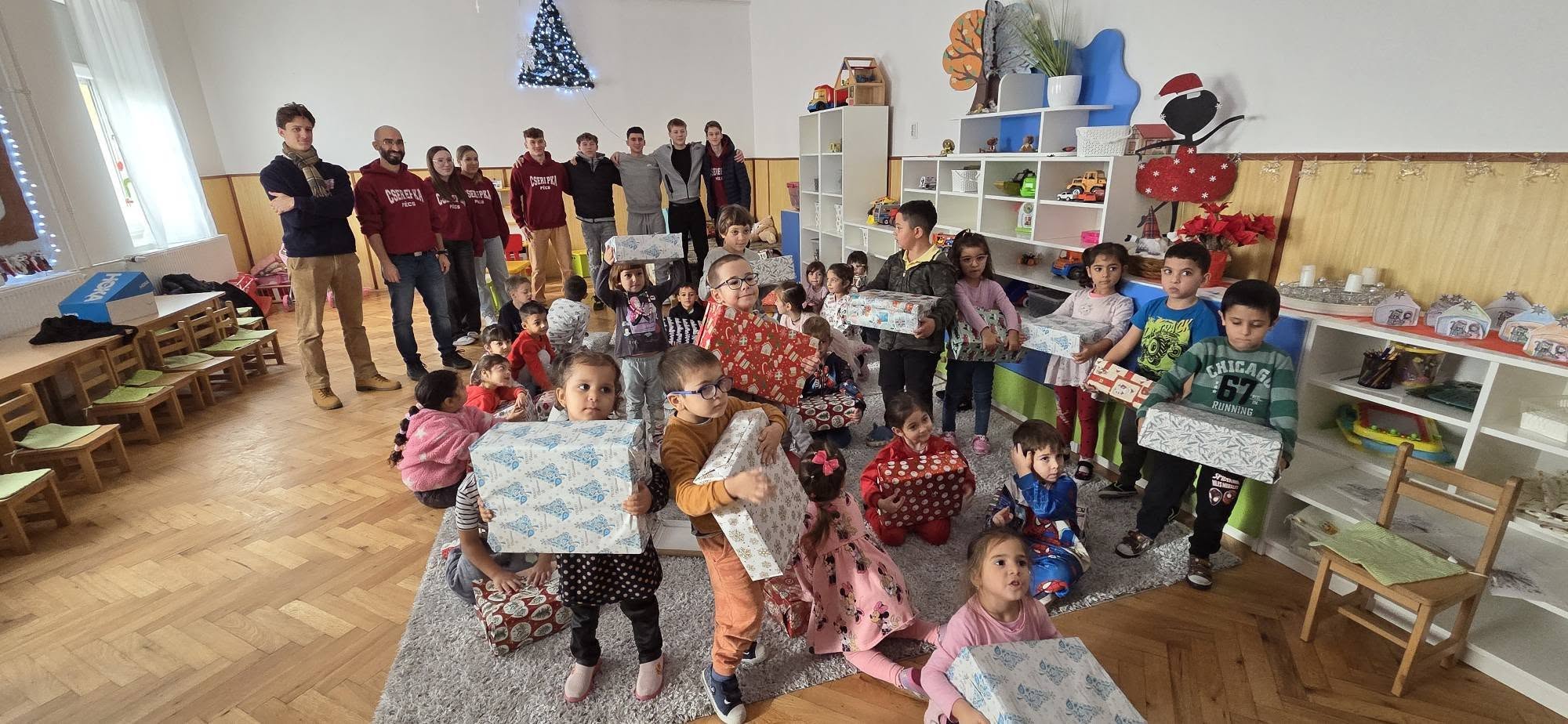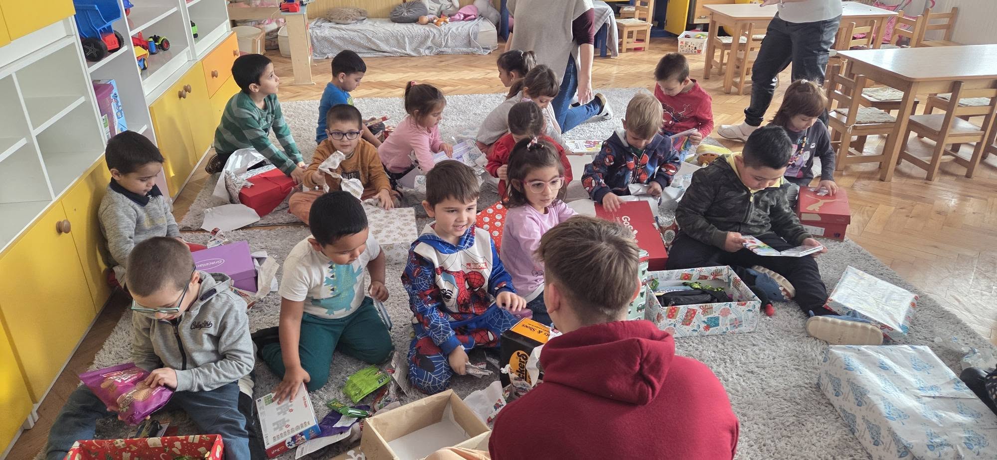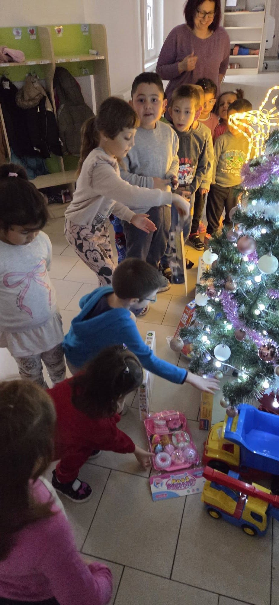 „Fogadj örökbe egy óvodát” programon belül, mint minden évben, idén is felkerestek bennünket jószándékú iskolások cipődobozos ajándékaikkal. Mi ajándékkal, ünnepi zsúrral, verssel, énekkel köszöntük meg kedvességüket. A szülőknek, nagyszülőknek karácsonyi műsorral készültünk és vártuk együtt az ünnepet. A gyerekek öröme, vidámsága határtalan volt.