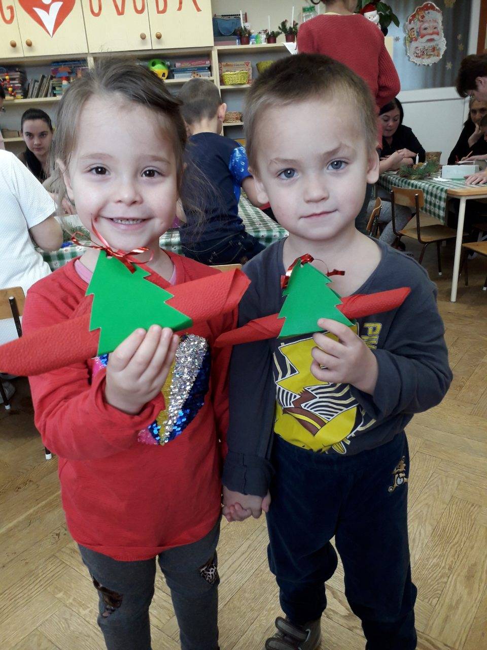 Az egész hónapot a szeretet fenséges ünnepében töltöttük.Ez az időszak a gyerekek számára,mind a külsőségekben,mind érzelmekben teljesen más mint a többi. Boldogító jó cselekedetekkel ajándékozták meg a gyerekek egymást.A beszélgetések hatására a társaiknak segítettek, vigaszt nyújtottak,így jobban érezték magukat. Fontosnak tartottuk, hogy hálásak legyünk azért ,hogy tudunk olyat tenni, hogy \\\”Jobb Veled a Világ ! \\\” Megtapasztalták hogy szüleik megajándékozása nagy öröm, nem csak kapni,hanem adni is jó érzés. A karácsonyi barkácsoló közben beszélgettünk a boldogító jó cselekedetekről, a szülőket is bevontuk ebbe a témába. Az óvodai ünnepségen boldogan adták át a saját készítésű ajándékot ,szívet melengető jó cselekedetet adhattunk egymásnak ,és szüleiknek. Hála öröm szeretett ragyogta be szívüket.