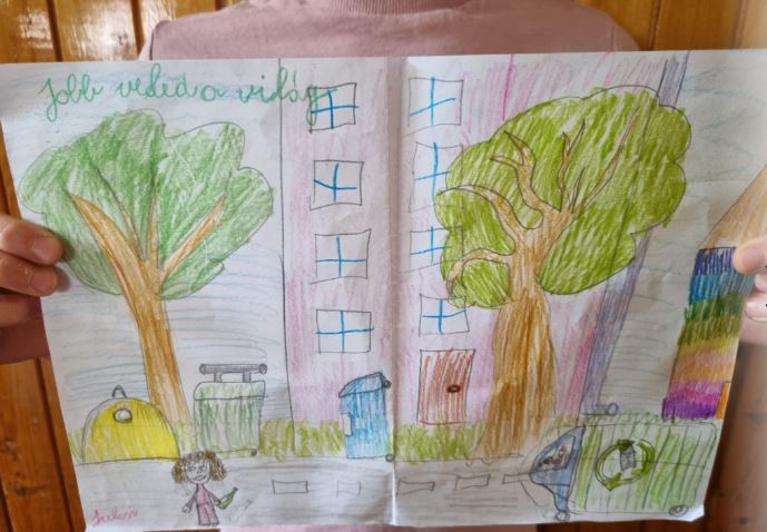 Jobb Veled a Világ címmel a 2. c osztály tanulói rajzban fejezték ki a boldogságot biztosító tetteket, örömöket, a fenntarthatóság segítését.