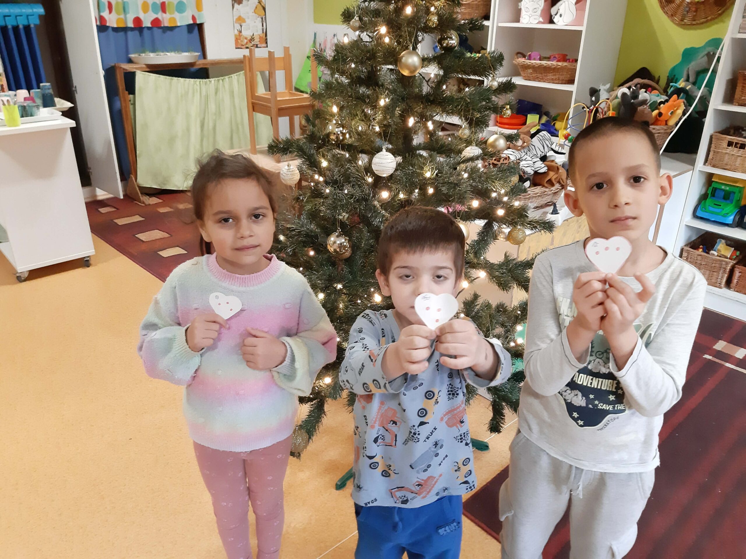 December hónapunk a várakozás, a szeretetteljes együttlét jegyében telt. Mi felnőttek is készültünk meglepetésekkel, örömet okozó programokkal, és közösen is részt vettünk ezekben. Mikulás érkezésére nagy izgalommal, örömmel készültünk, majd a szülőkkel közös adventi délelőttöt töltöttünk együtt, mézeskalács sütéssel, szeretetvendégséggel, közös játékkal. A jeles napokat is megünnepeltük, Luca- búzát ültettünk, ajándékot készítettünk, amit hazavittek a gyerekek, a Karácsonyt közösen, az egész óvoda ünnepelte, az óvónénik mesejátéka, közös éneklés meghitt hangulatot eredményezett számunkra. Megnéztük a Szofi és a Mikulás történetét, megbeszéltük, hogy mi történt, és, hogy a segítség is csak akkor igazi, ha nem visszük túlzásba. Készítettem szíveket, minden gyermeknek, és az utolsó pár napban figyelemmel kísértük hogy ki, mikor, kinek segített. Vannak a csoportban néhányan, jellemzően nagycsoportos gyermekeink, de egy kiscsoportos kisfiú is, akik rendszeresen segítenek nekünk felnőtteknek, illetve egymásnak is. Ők lettek a legjószívűbb gyermekeink, akiket megtapsoltunk. Játszottuk a Halló! játékot is, ahol a jó tulajdonságokat próbáltuk megerősíteni a gyermekekben.