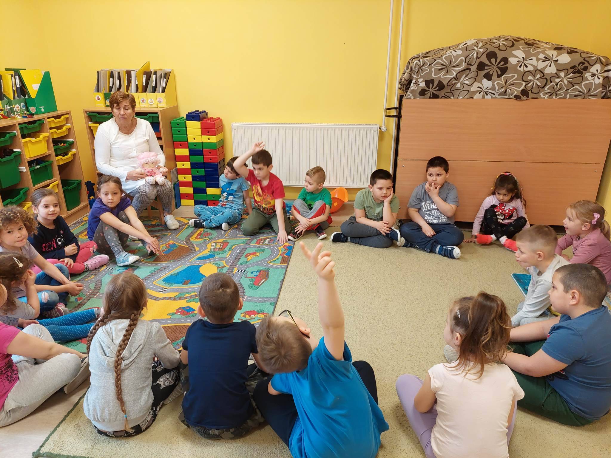 Bizalomjáték: A gyerekek játék közben is gyakorolhatják a jóindulat, megbocsátás, bizalom játékot. Az ovisok párt választottak maguknak, azok közül a gyerekek közül akivel a délelőtti játék során konfliktusa vagy sérelme volt. Megbocsájtásképpen a játék során a párok közül az egyik gyermek szemét bekötöttük, a másik gyermeknek kellett az akadályok között átvezetni úgy, hogy ne ütközzön belel egyetlen tárgyba sem. A közös játék során az építő hozzáállással a társas harmónia megerősödött.