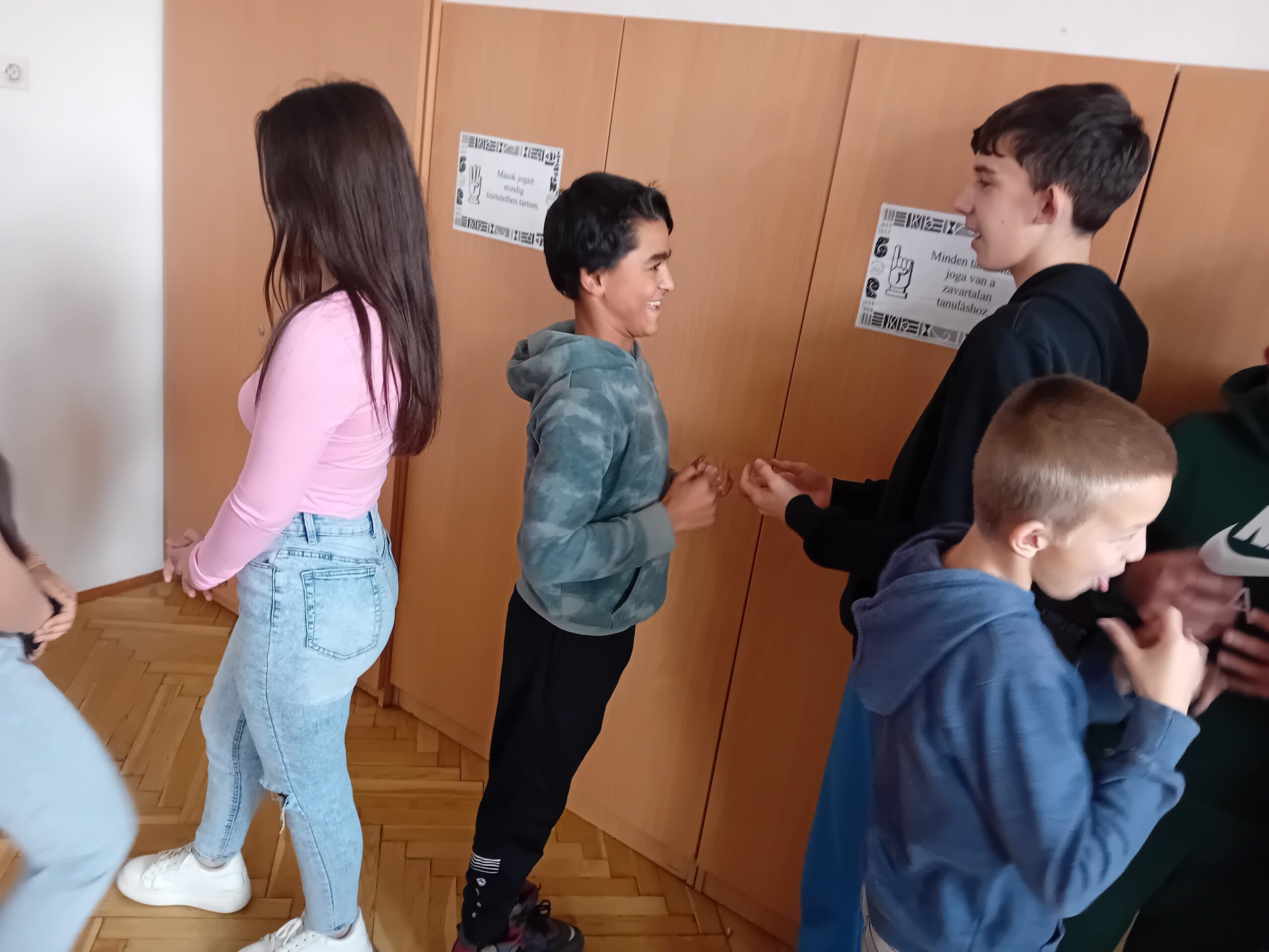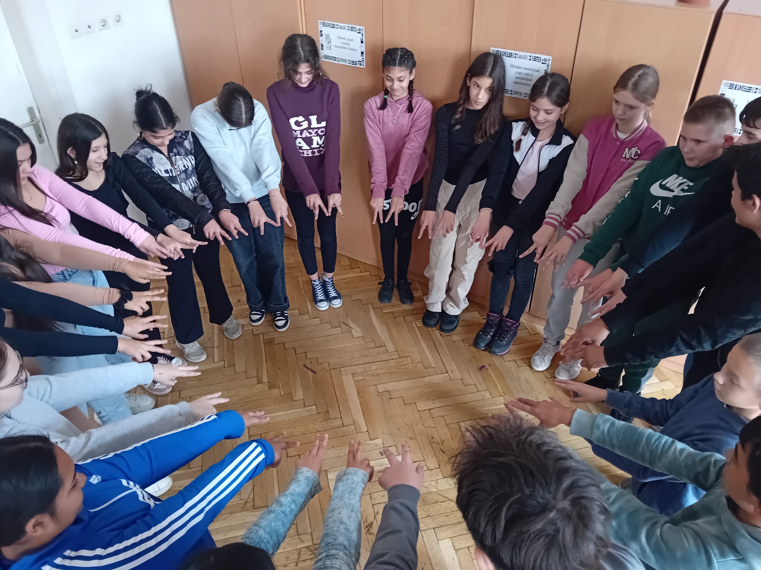 A mai foglalkozás középpontjában az emberi kapcsolatok minősége és a közösségen belüli elfogadás állt. Ennek hangsúlya különösen indokolt ebben az életkorban, amikor egyre gyakoribbá válnak a verbális és fizikai bántások, illetve a „piszkálódás” álcája mögé bújt bántó megjegyzések. A József Attila és Arisztotelész idézetekre épülő bevezető beszélgetés meglepően mély érzelmi bevonódást váltott ki a tanulókból, őszintén fogalmazták meg, mit jelent számukra egy megtartó, elfogadó közösség, és milyen negatív hatásai vannak a bántó viselkedésformáknak. Már ekkor érződött, hogy képesek reálisan reflektálni saját és társaik viselkedésére. A „Nagyra becsüllek azért, mert…” páros feladat különösen emelkedett hangulatot teremtett. A gyerekek szokatlan nyitottsággal, egymás szemébe nézve fogalmaztak meg megerősítő, bátorító mondatokat, ami érezhetően erősítette az empátiát, az érzelmi tudatosságot és a társas kapcsolatok iránti felelősségérzetet. A „hasonlóságkör” játékban rácsodálkoztak, mennyi közös dolog kapcsolja össze őket, többek között olyan egyszerű, mégis személyes kijelentések mentén, mint: „Szeretek a természetben sétálni” vagy „Szeretek hason fekve aludni.” Ez a gyakorlat oldotta a feszültséget, és erősítette a közösségi élményt. A barátság-szobrok megalkotása látványos kreativitást hozott felszínre. A lányok és fiúk először külön-külön formálták meg a barátság számukra legfontosabb értékeit testük segítségével, majd közösen is készítettek egy összetett osztályszobrot. Érdekes volt megfigyelni, hogyan jelennek meg a nemi különbségekből fakadó eltérő hangsúlyok a mozdulatlan kompozíciókban. A barátságvers írása tovább mélyítette az értékalapú gondolkodást, miközben fejlesztette a tanulók kreatív nyelvi önkifejezését. A zárókörben megfogalmazott személyes vállalások „kevesebbet piszkálok”, „védem a másikat”, „több bizalmat adok” azt mutatták, hogy a tanulók megértették, a közösség hangulata és biztonsága jelentős részben az ő viselkedésükön múlik. A foglalkozás érezhetően erősítette a csoport szociális érzékenységét, együttműködését és empátiáját, és hozzájárult a biztonságosabb, elfogadóbb osztályközösség kialakulásához. Pedagógusként megerősítést kaptam abban, hogy a tanulók fogékonyak a pozitív változásra, és hogy az ilyen típusú közösségfejlesztő alkalmak kulcsszerepet játszanak a bántalmazásmentes, bizalomra épülő iskolai környezet megteremtésében.