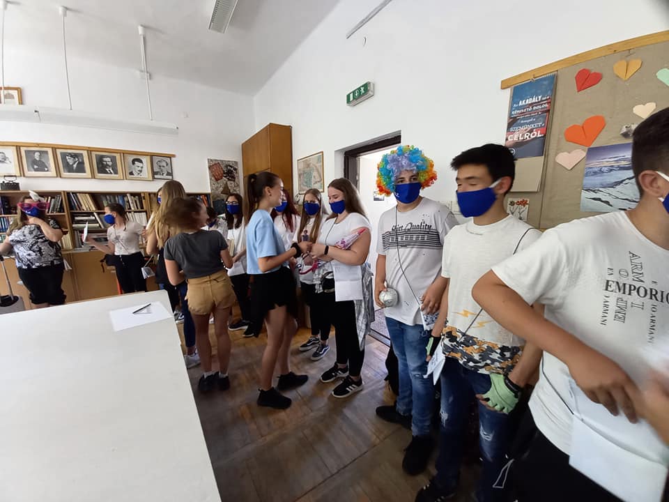Nyolcadikos bolondballagóink látogatása az osztályokban. Az alsó és felső évfolyamok tanulói meglepetés cédulákat készítettek az elköszönő diákoknak rajta egy-egy jókívánsággal, mely a ballagók tarisznyájába került.