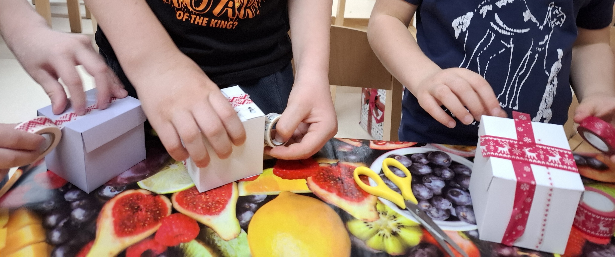 Beszélgettünk arról, hogy ki minek szokott örülni. Elcsendesítő és feszültségoldó relaxációs gyakorlatokat végeztünk. Az adventi időszakban „varázsgömb” kereséssel tettük a napokat szinesebbé. A gömb minden nap valamilyen különleges eseményt, mesét, vagy közös játékot rejtett. A gyerekek a szüleiknek ajándékot készítettek, hiszen nem csak kapni, adni is jó.