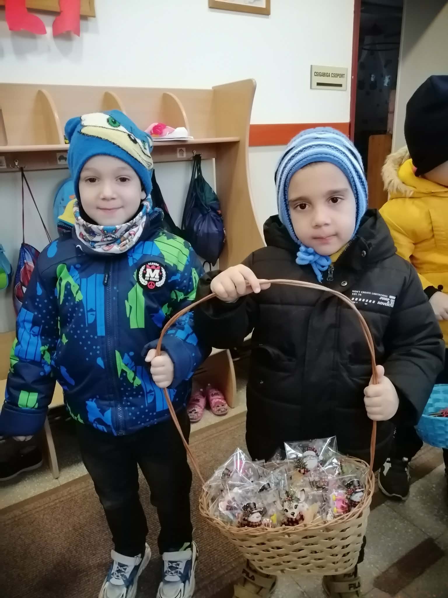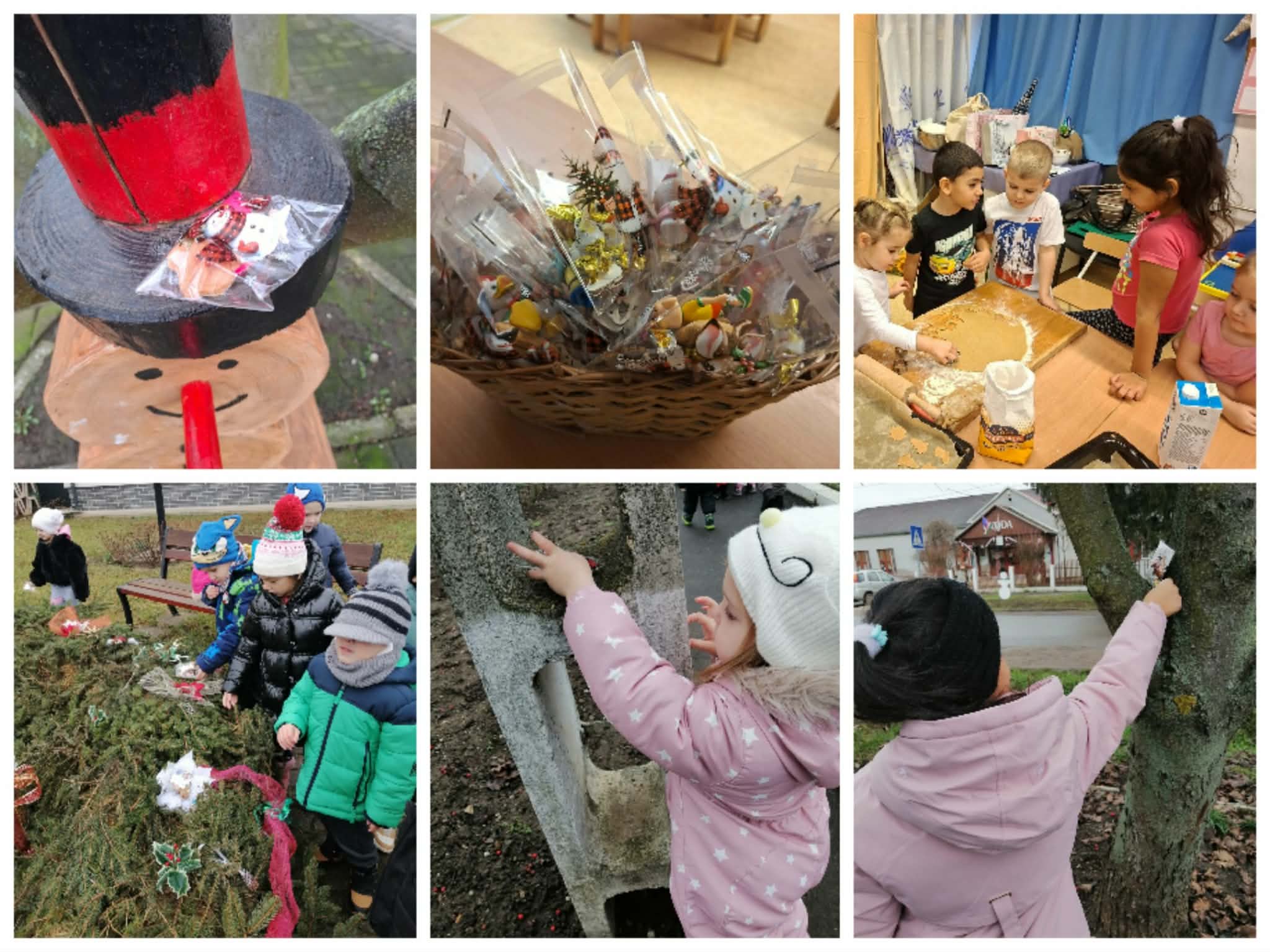 December hónapunkat az izgatottság, a jólelkűség, a segítőkészség, az adni tudás öröme jellemezte. A hónap elején a Mikulásvárás határozta meg mindennapjainkat. A jócselekedetek gyakorlására ösztönözte a gyerekeket a jócselekedetek matricagyűjtő. A hónap jelképét ábrázoló gyűjtőt a gyerekek sablont körül rajzolva alkottak meg. Minden gyermek a jelével ellátott szívecskébe egy-egy matricát kaphatott a segítő, támogató viselkedéséért, tettéért cserébe. A hónap témájának feldolgozása végére minden egyes gyermek „Jószívű” elismerést kapott, hiszen szinte minden szívecske „csordultig telt” a matricákkal. Segítettek a kisebbeknek az öltözködésben, a felnőtteknek az eszközök előkészítésében, volt, aki sepregetett, volt, aki összehajtotta társa ágyneműjét… stb. Nagycsoportosaink fákat ültettek településünk régi, felújításra váró játszóterén, s a későbbi gondoskodást is vállalva örökbe fogadták a facsemetéket. Ezzel a gesztussal nemcsak egy nagyszerű dolgot cselekedtek, hanem a felelősségvállalás útján is elindultak Földünk védelme érdekében. A családokat oly módon vontuk be a téma feldolgozásába, hogy az egyik hétvégén egy-egy szívecskével álltak a gyerekek a szüleik elé, rajta felirattal: „Jót akarok cselekedni. Kérj bármit!” Jöttek a visszajelzések leírások, fotók formájában, valamint a gyermekek élménybeszámolói alapján: kivitték a szemetet, segítettek a főzésben, sőt volt, aki fát is vágott. 😊A karácsonyi hangulatot alapozó dalok mellett szinte minden nap meghallgattuk Bagdi Bella: Jó emberré csak a szívemmel válhatok című dalát. A nagy izgalomban többször volt szükség arra, hogy különböző légzőgyakorlatokkal lecsendesítsük magunkat. Sok minden történt, ami a gyerekek számára azt közvetítette, azt tapasztaltatta meg, hogy adni jó. Kis ajándéktárgyakat készítettünk, festettünk, mézeskalácsot sütöttünk. Ezekből apró csomagokat raktunk össze, melyeket az óvoda utcájában elrejtettünk egy apró üzenettel: „Ha megtalálsz, vigyél haza! Boldog Karácsonyt!” A következő napokban izgatottan figyelték, hogy a csomagok sorban eltűntek a rejtekhelyekről. G. Joó Katalin: Meglepetéssüti című meséjét hallgatták meg a gyerekek a Boldogságóra keretében. Ez a kis történet arról szólt, hogy nem kell sok minden, hogy örömet csempésszünk valaki szívébe, csak egy csipet figyelmesség, szeretet. A sütisütésről szóló történet vezetett át minket a mézeskalács sütésbe. A sok, finom, szépen feldíszített süteményt jóérzéssel kínálták végig az óvoda összes gyermeke és dolgozója között. Néhány szülőnek, és nagyobb, iskolás testvérnek köszönhetően arra is jó példát láthattak a gyerekek, hogy nem csak kézzel fogható dolgokkal szerezhetünk örömet másoknak. Ez a maroknyi kis csapat az óvodai karácsonyon betlehemes játékot mutatott be a gyerekeknek, melynek végén közös éneklésre invitálták őket. Úgy gondolom nap mint nap remek példákat láthattak, saját tapasztalatot élhettek meg azzal kapcsolatban, hogy jót cselekedni jó érzéssel tölti meg az ember szívét. Így megérdemelten léphettek feljebb eggyel a Boldogságvárához vezető lépcsőn.