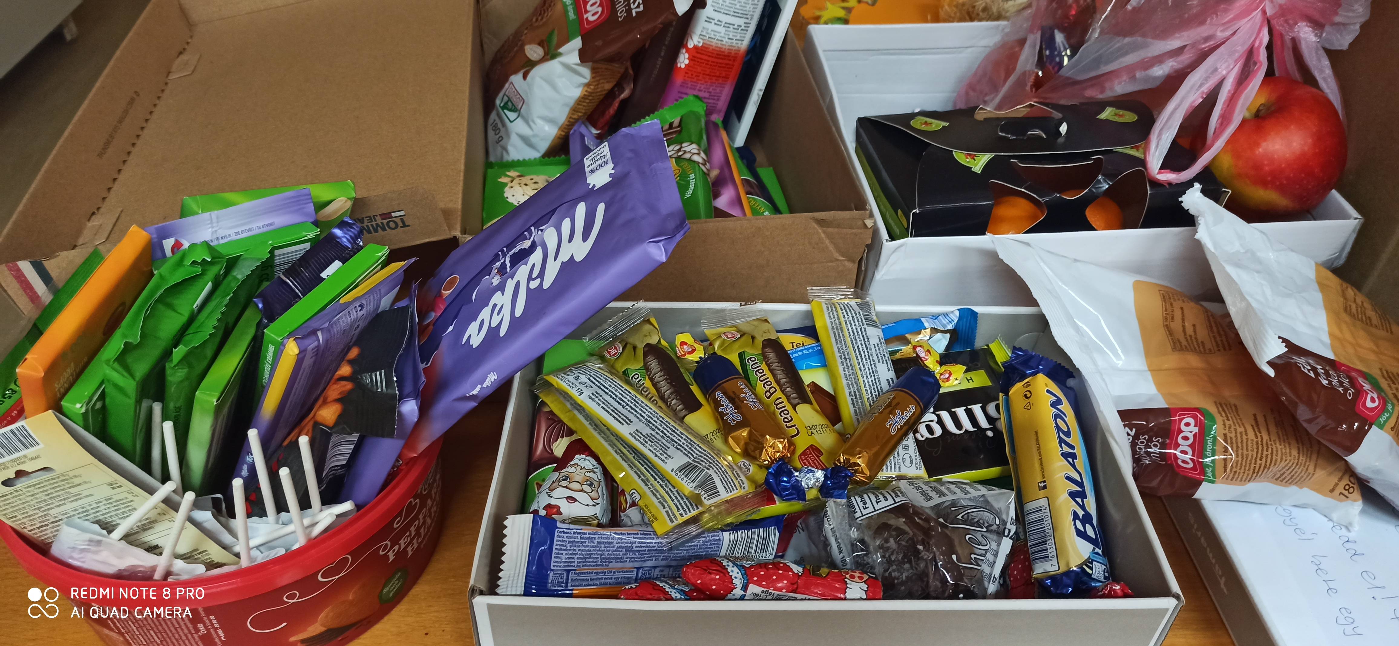 A Szent Ágota ÁLLAMI GONDOSKODÁSBAN ÉLŐ ÉS VESZÉLYEZTETETT FIATALOK TÁMOGATÁSÁÉRT ALAPÍTVÁNY felhívására azonnal gyűjtésbe kezdtek a családok, és önzetlenül küldték ajándékaikat. Büszkék vagyunk arra, hogy osztályunkból mindenki adományozott. Volt aki megunt játékokat hozott, volt aki a saját Mikulás csomagjából vette le a csokikat. Az alapítvány munkatársait is meglepte, hogy milyen sok doboz telt meg. Már úton vannak a csomagok és jó érzéssel tölt el minket, hogy valamennyi ajándék időben a fenyőfa alá kerül.