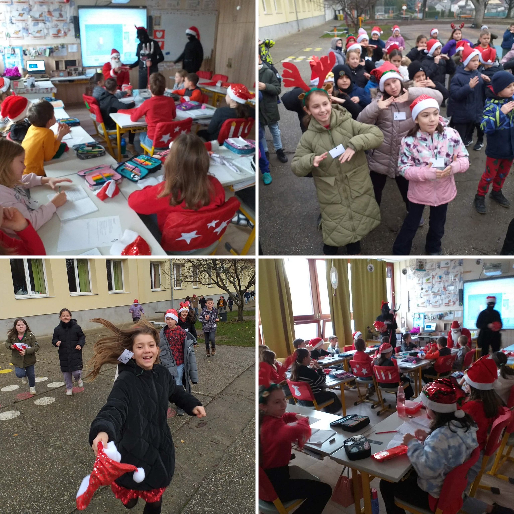 A Mikulásvárás a gyerekek számára hozott örömet. A városi adventi gyertyagyújtáson műsorunkkal gazdagítottuk a karácsonyi várakozás örömét. Idén a 3. gyertyát lobbantottuk lángra jelképesen a városi szökőkút köré font adventi koszorún. Az iskolai „Szívek karácsonya” kezdeményezéshez 18 fővel csatlakoztunk. Tartós élelmiszer adományainkkal a Bólyi Családsegítő és Gyermekjóléti Szolgálatot támogattuk, akik rászoruló családok számára juttatták el felajánlásainkat. Mézeskalácsot, linzereket, dióskifliket készítettünk az iskola tankonyháján, amivel az 1. a osztály tanulóit és tanárainkat vendégeltük meg. A „Mézeskalács csodák” kiállítással az iskolánkba járó tanulók számára nyújtottunk pazar látványosságot az elkészített házikókkal, angyalkákkal, rénszarvas figurákkal. Végezetül megtisztelő hallgatóság voltunk a Vigadóban a Platánliget Otthon lakóinak (fogyatékkal élő fiatalok, felnőttek) műsorán. És a szünet előtti utolsó tanítási napon kalácsos-kakaós-karácsonyváró partyt rendeztünk az osztályban. Ezek az események megerősítették bennünk a „Jónak lenni jó!” fontosságát.
