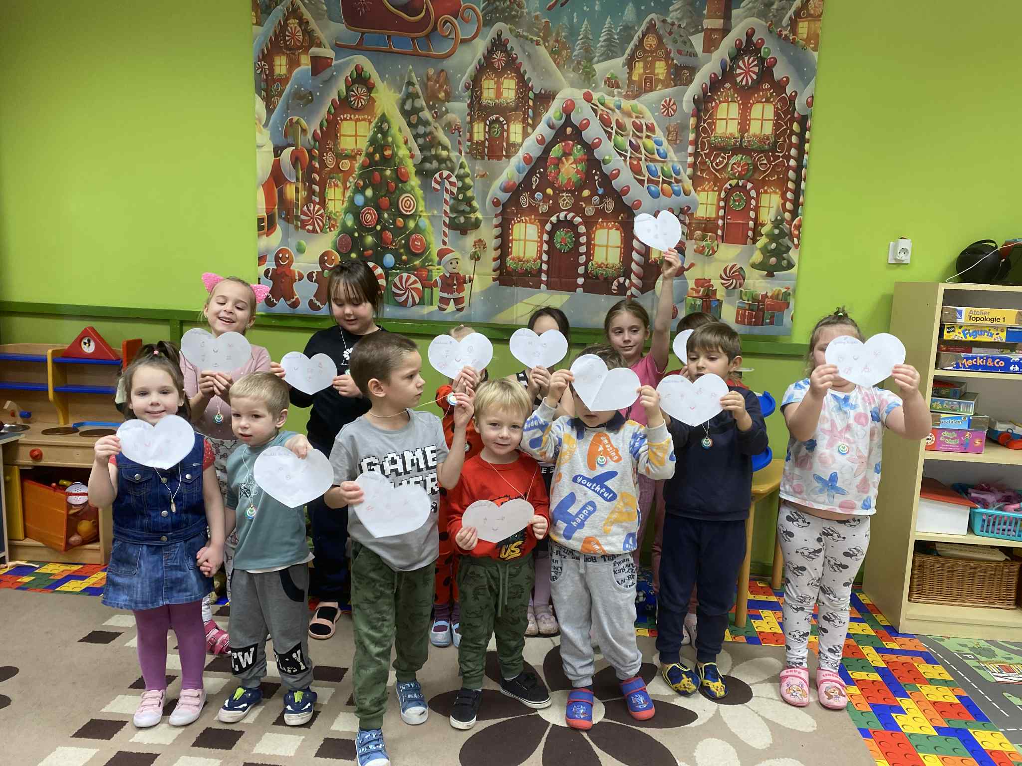 A napi beszélgetőkörök alkalmával, kiosztottam a gyerekeknek a kivágott szívecskéket, amire azoknak a jele került, akik az elkövetkező időszakban valami jót cselekedtek a társaikkal. Minden nap, ebéd előtt megbeszéljük a délelőtti eseményeket, ki-mit látott, ki-mit érzett, és közösen visszaemlékezünk a kedvességekre, a jó cselekedetekre.